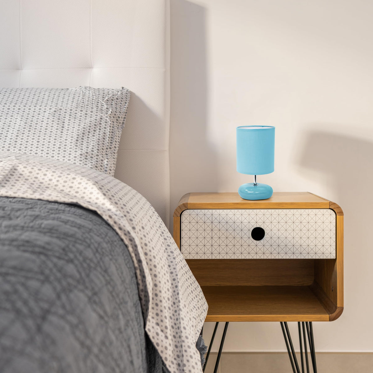 Simple Designs Lt1153-Blu Petite Circle Stone Table Lamp For Bedroom, Kids Room, Office, Living Room, Nursery, Reading Nook, Blu