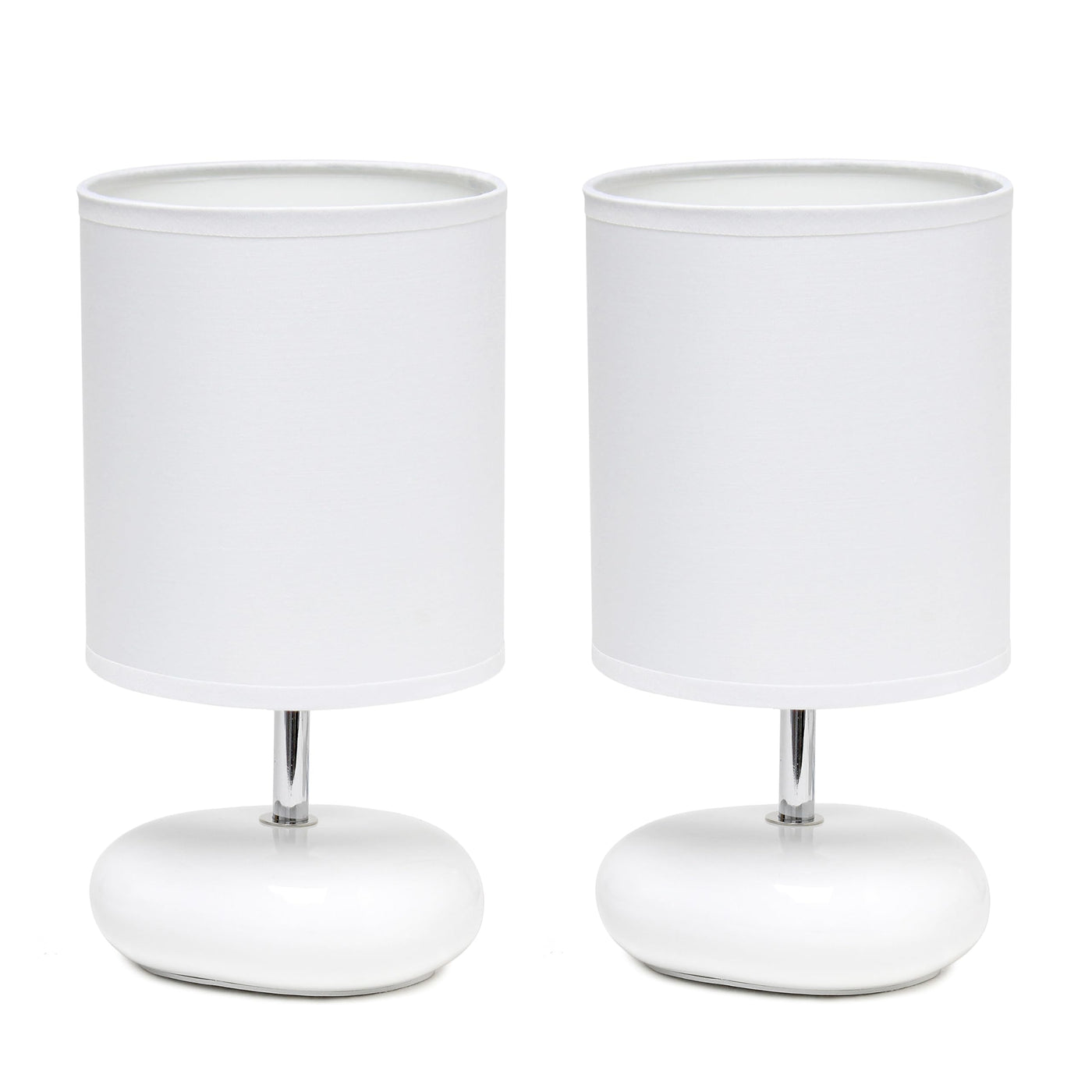 Simple Designs Lt1153-Wht-2Pk Petite Circle Stone Table Lamp 2 Pack Set For Bedroom, Kids Room, Office, Living Room, Nursery, Reading Nook, White