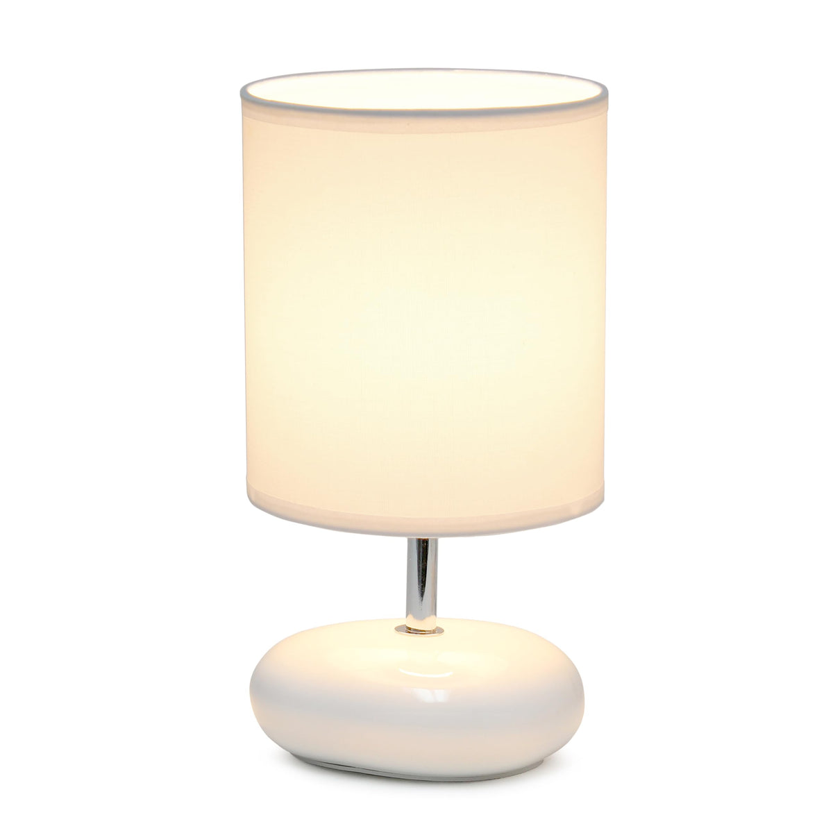 Simple Designs Lt1153-Wht Petite Circle Stone Table Lamp For Bedroom, Kids Room, Office, Living Room, Nursery, Reading Nook, Whi