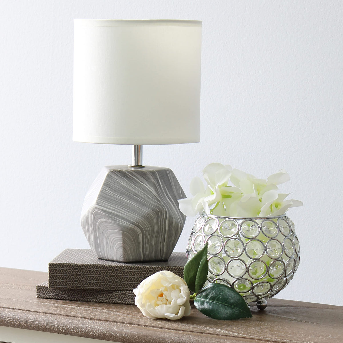 Simple Designs Lt1212-Mbl 10.24'' Modern Round Geometric Cube Table Lamp With Matching Shade, Marble-Inspired