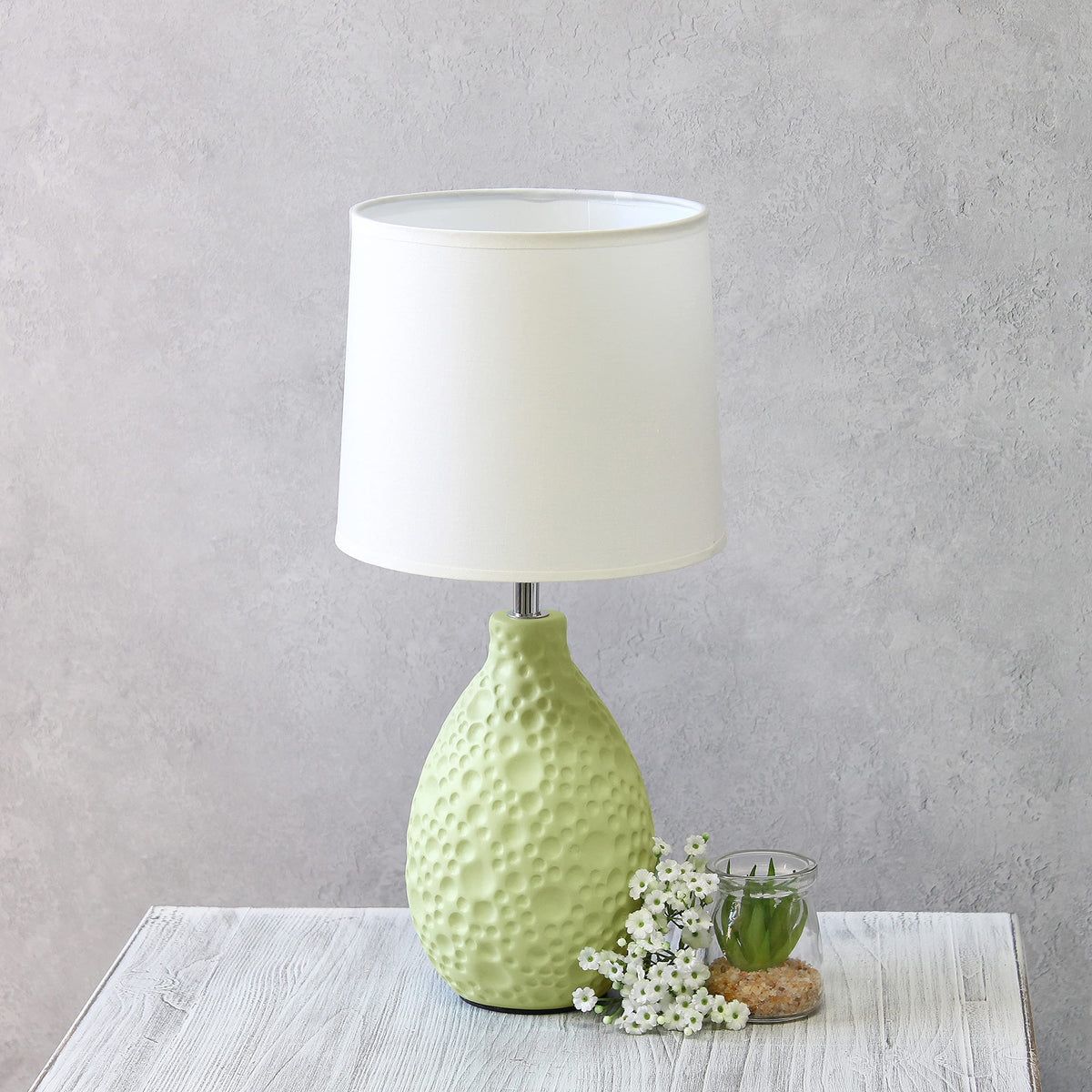 Simple Designs Lt2003-Grn Textured Stucco Ceramic Oval Table Lamp With White Fabric Shade, Green