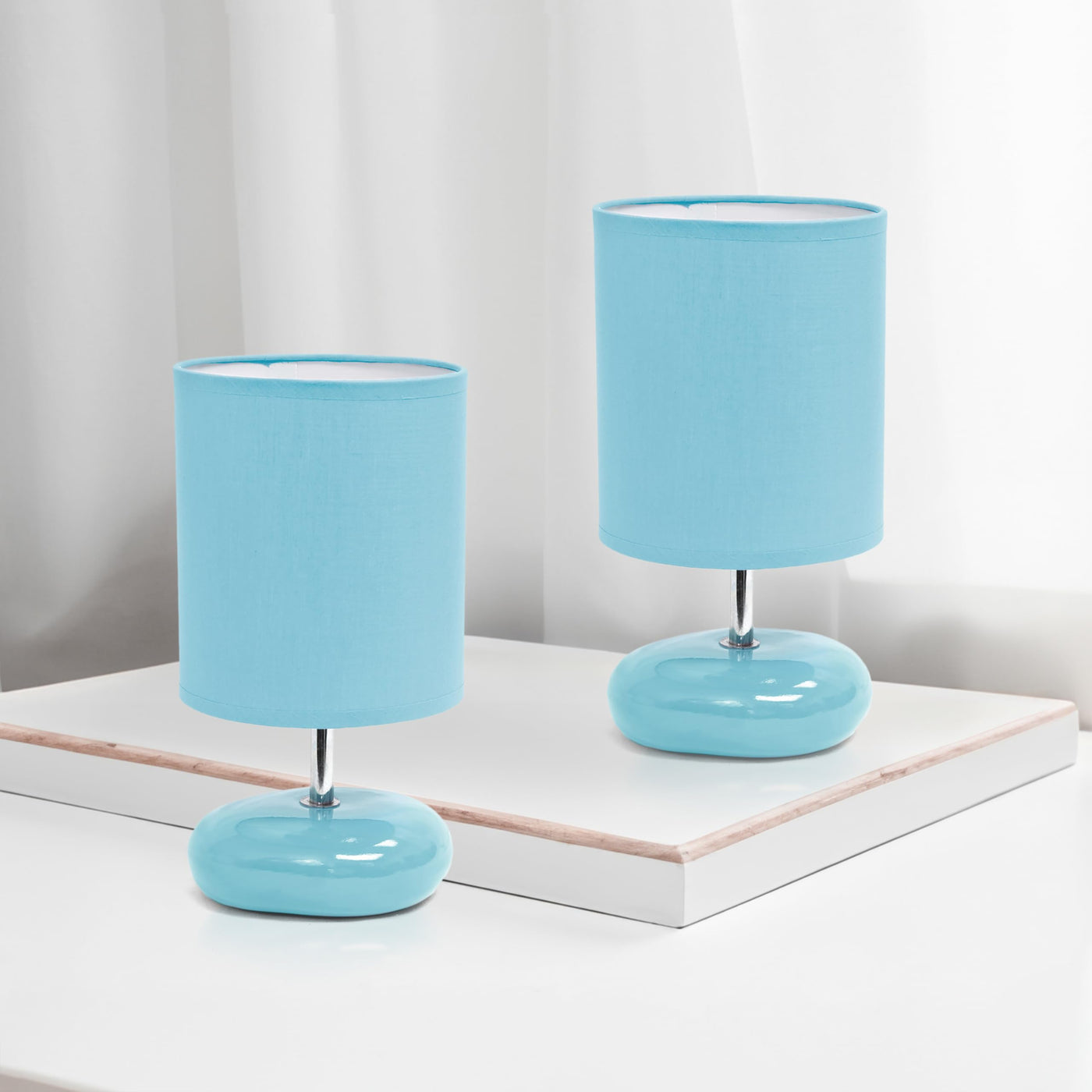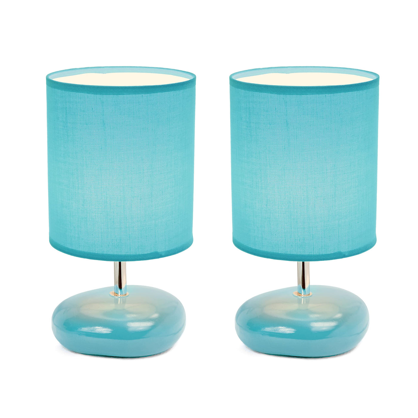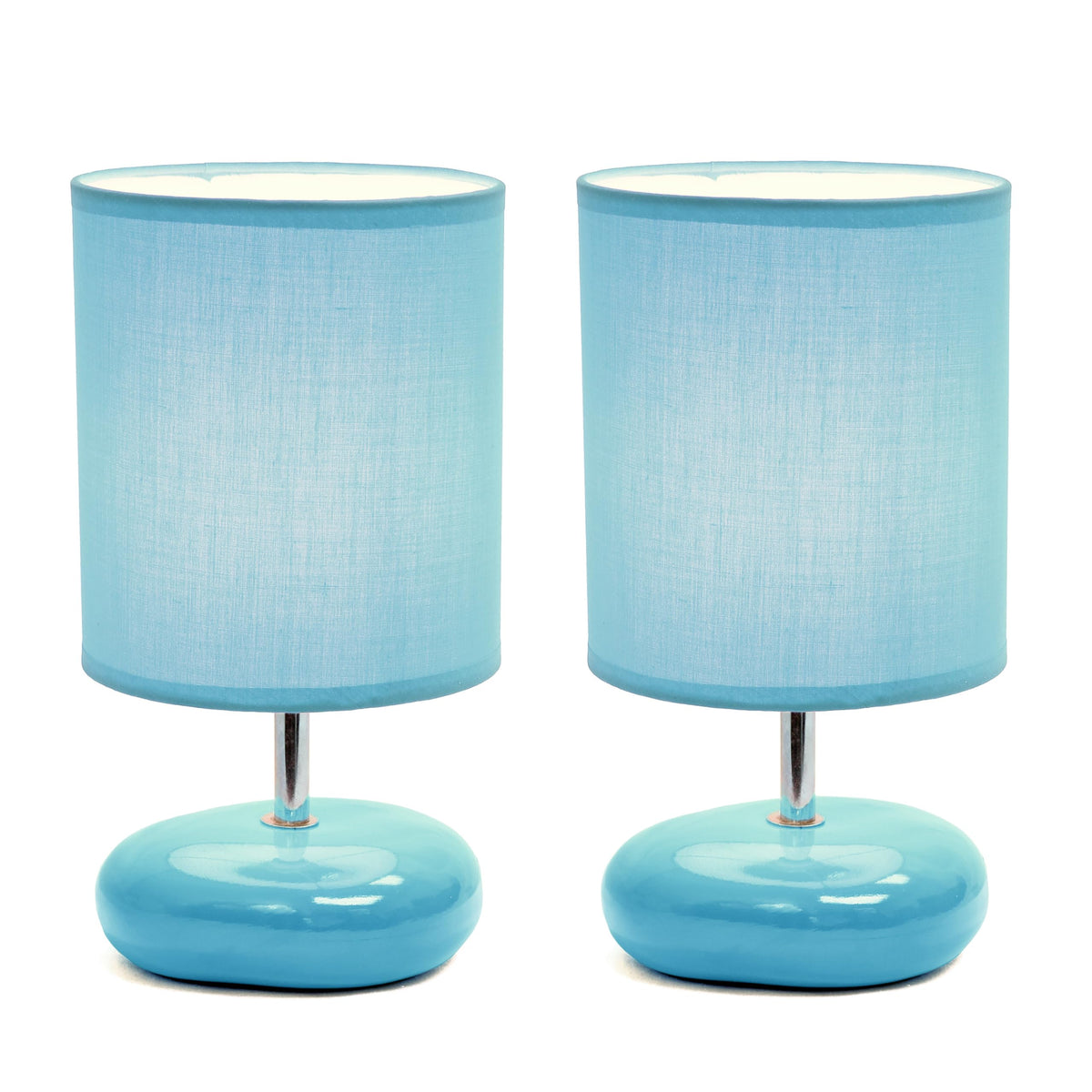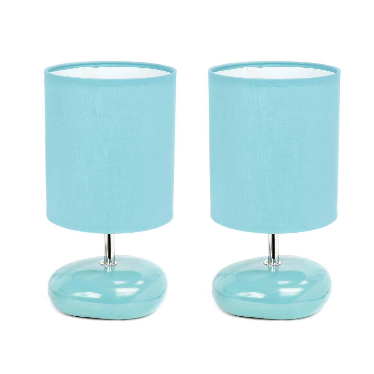 Simple Designs Lt2005-Blu-2Pk Stonies Small Stone Look Table Desk Bedside 2 Pack Lamp Set, Blue