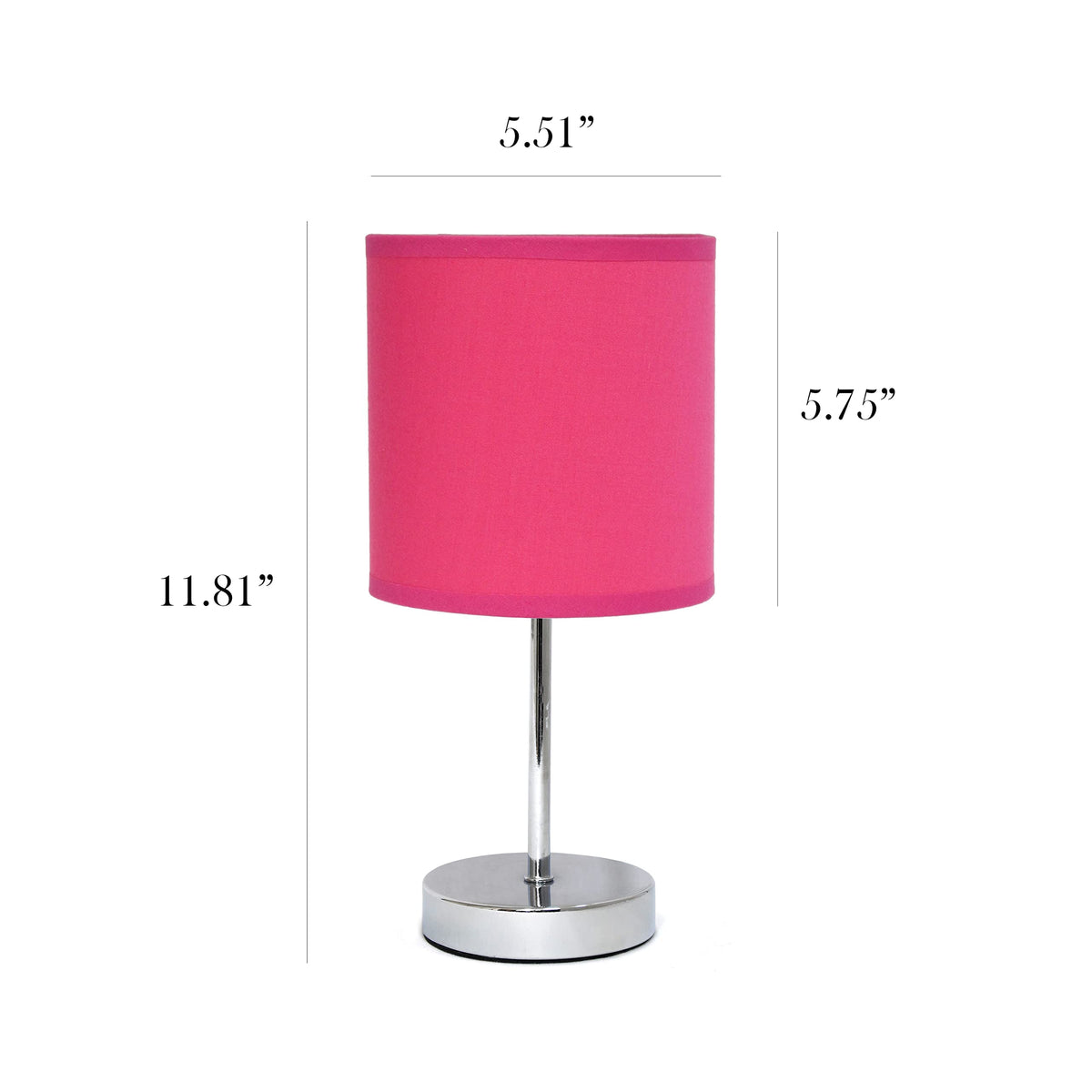 Simple Designs Lt2007-Hpk-Lb Basic Chrome Mini Table Lamp For Living Room, Nightstand, Desk, Countertop, Hot Pink, With Feit Led