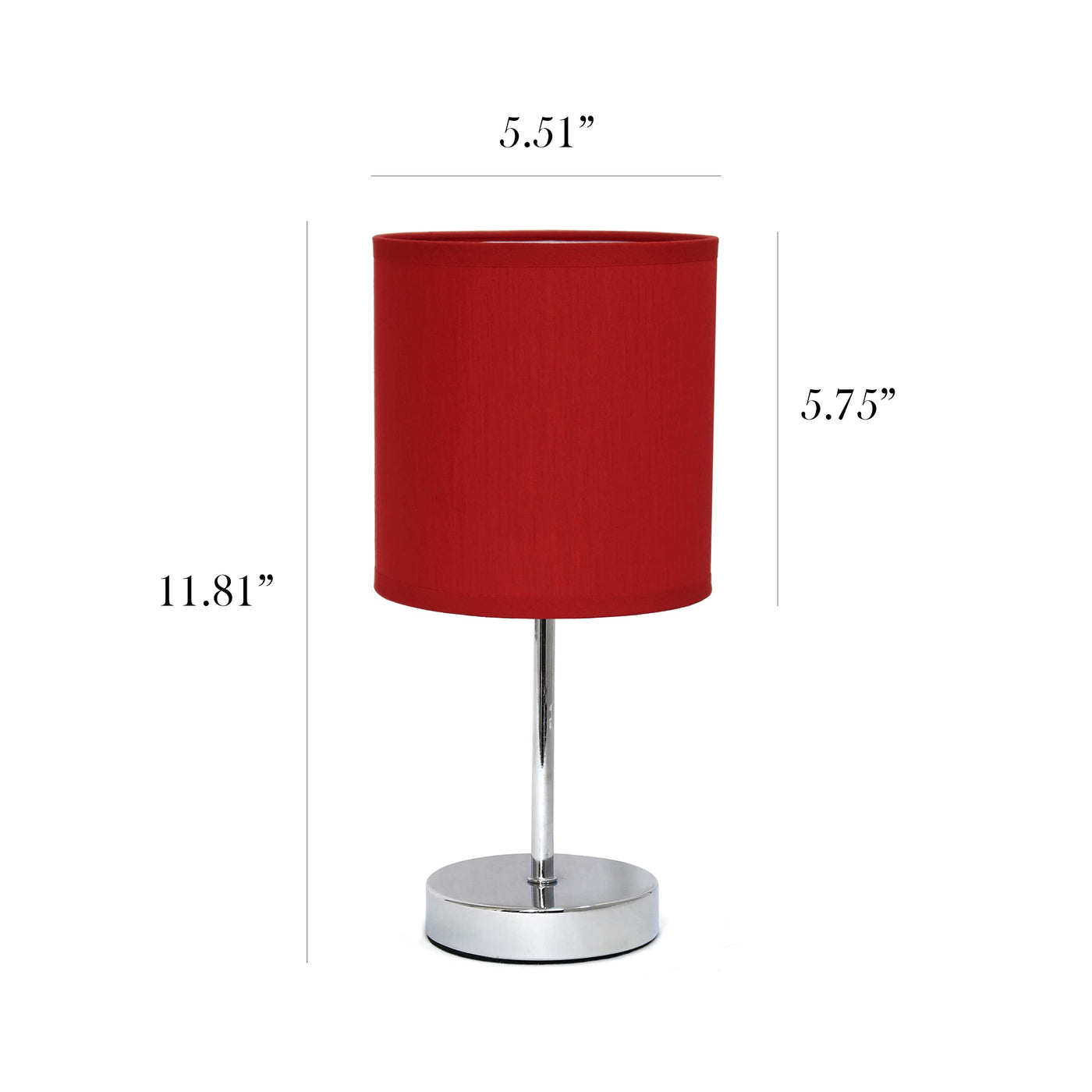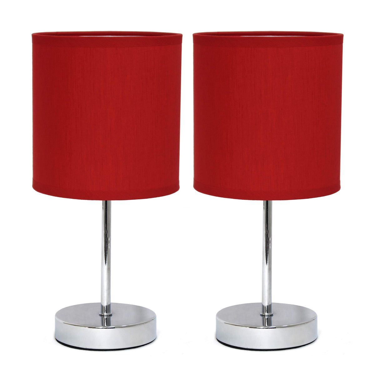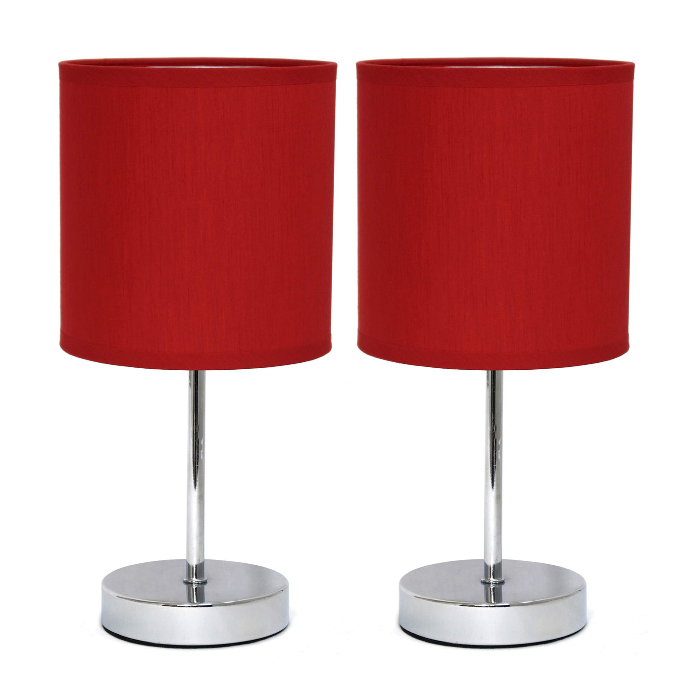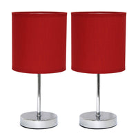 Simple Designs Lt2007-Red-2Pk Chrome Mini Basic Table Lamp With Fabric Shade 2 Pack Set, Red