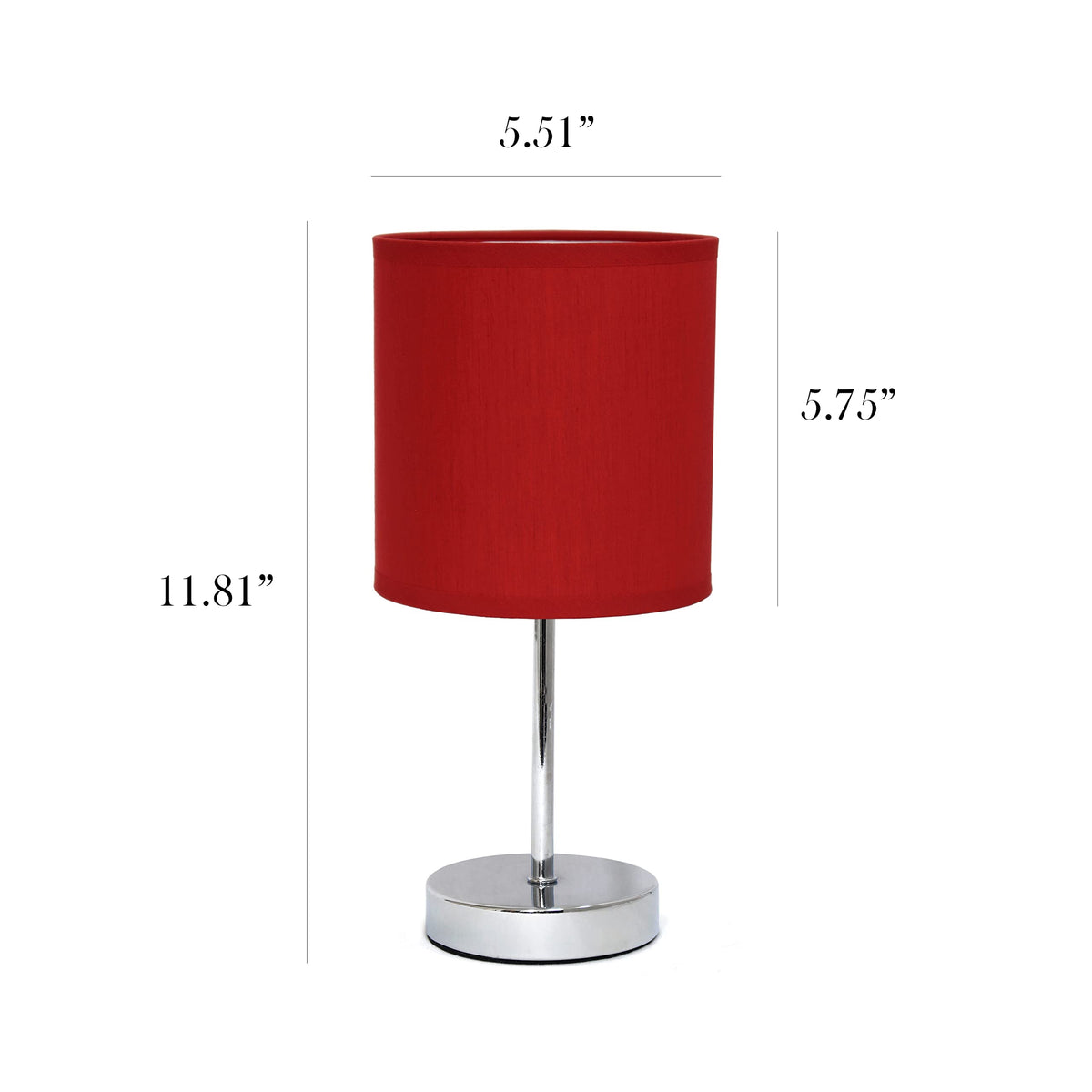 Simple Designs Lt2007-Red-Lb Basic Chrome Mini Table Lamp For Living Room, Nightstand, Desk, Countertop, Red, With Feit Led Bulb