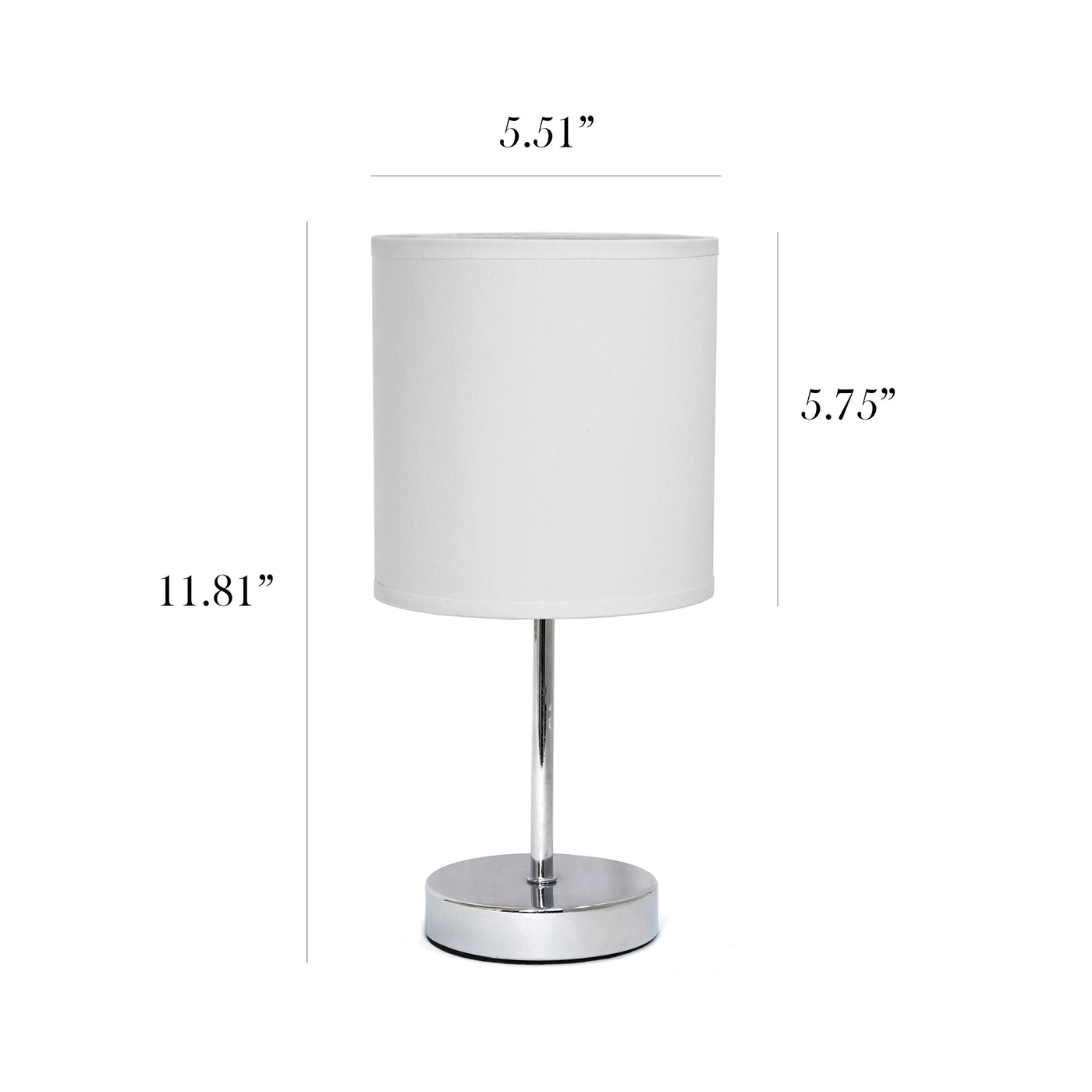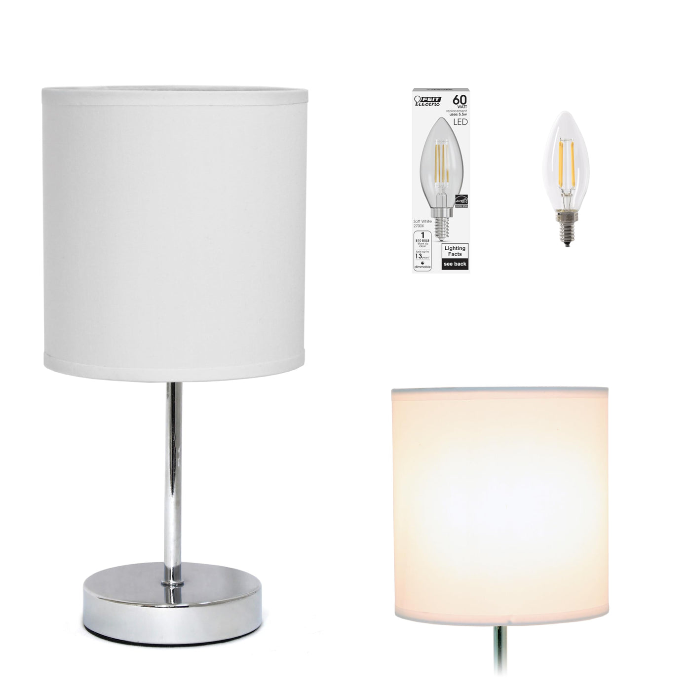 Simple Designs Lt2007-Wht-Lb Basic Chrome Mini Table Lamp For Living Room, Nightstand, Desk, Countertop, White, With Feit Led Bu