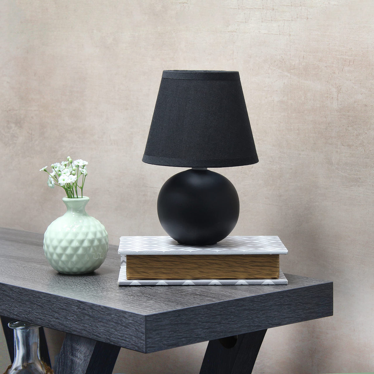 Simple Designs Lt2008-Blk Mini Ceramic Globe Table Lamp With Matching Fabric Shade, Black