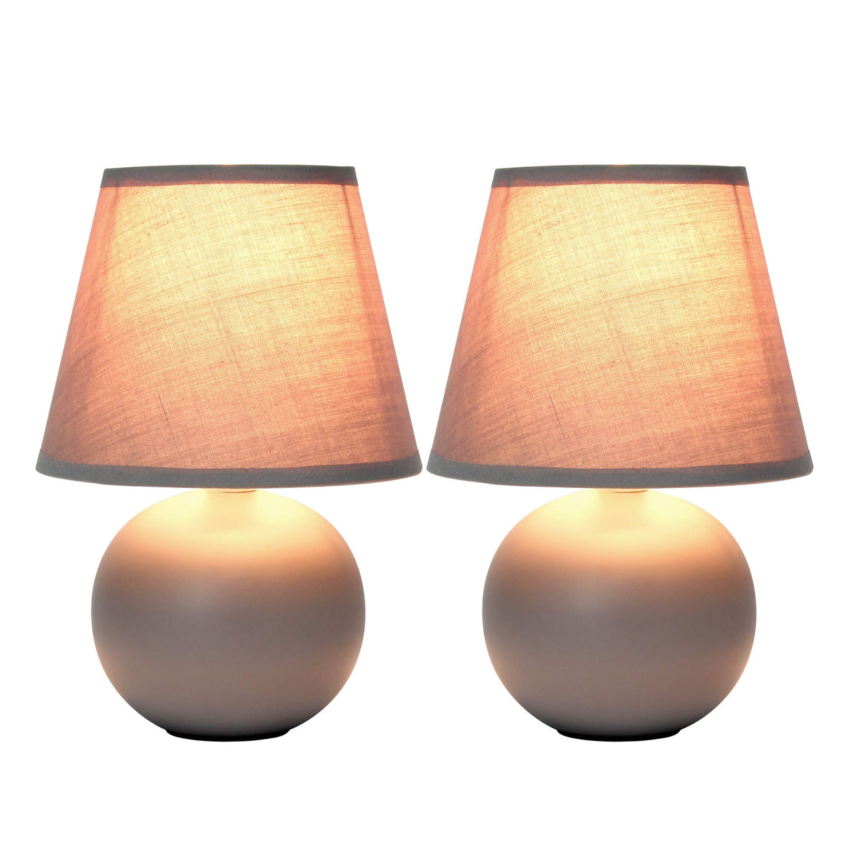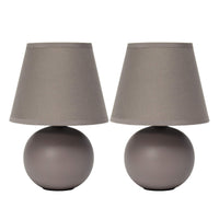 Simple Designs Lt2008-Gry-2Pk Mini Ceramic Globe Table Lamp 2 Pack Set With Matching Fabric Shade, Gray