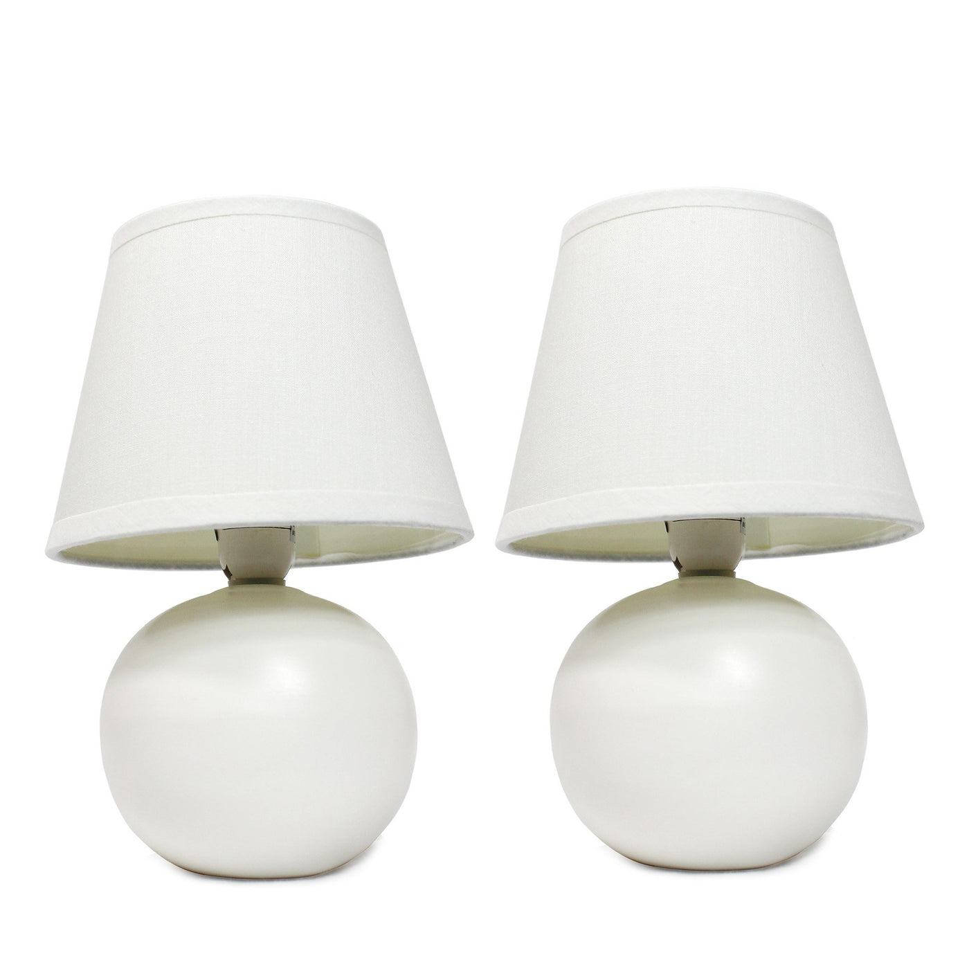 2 x Mini globe shaped ceramic bases with matching fabric shades | Perfect for living room, bedroom, office, kids room, or college dorm | Height: 8.66" Shade diameter: 5.51" | Each uses 1 x 40W type B10 E12 Candelabra Base bulb (not included) | LAMP IS A MINI LAMP - PLEASE SEE DETAILS FOR HEIGHT