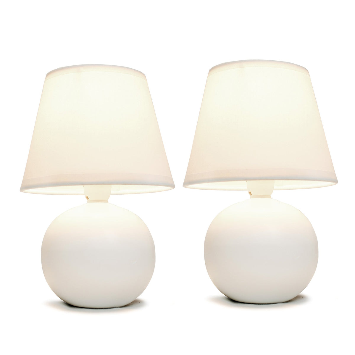 Q: What are the dimensions of the Simple Designs Mini Ceramic Globe Table Lamps?A: Each lamp stands at a height of 8.66 inches, with a shade diameter of 5.51 inches, making them compact and suitable for various spaces.