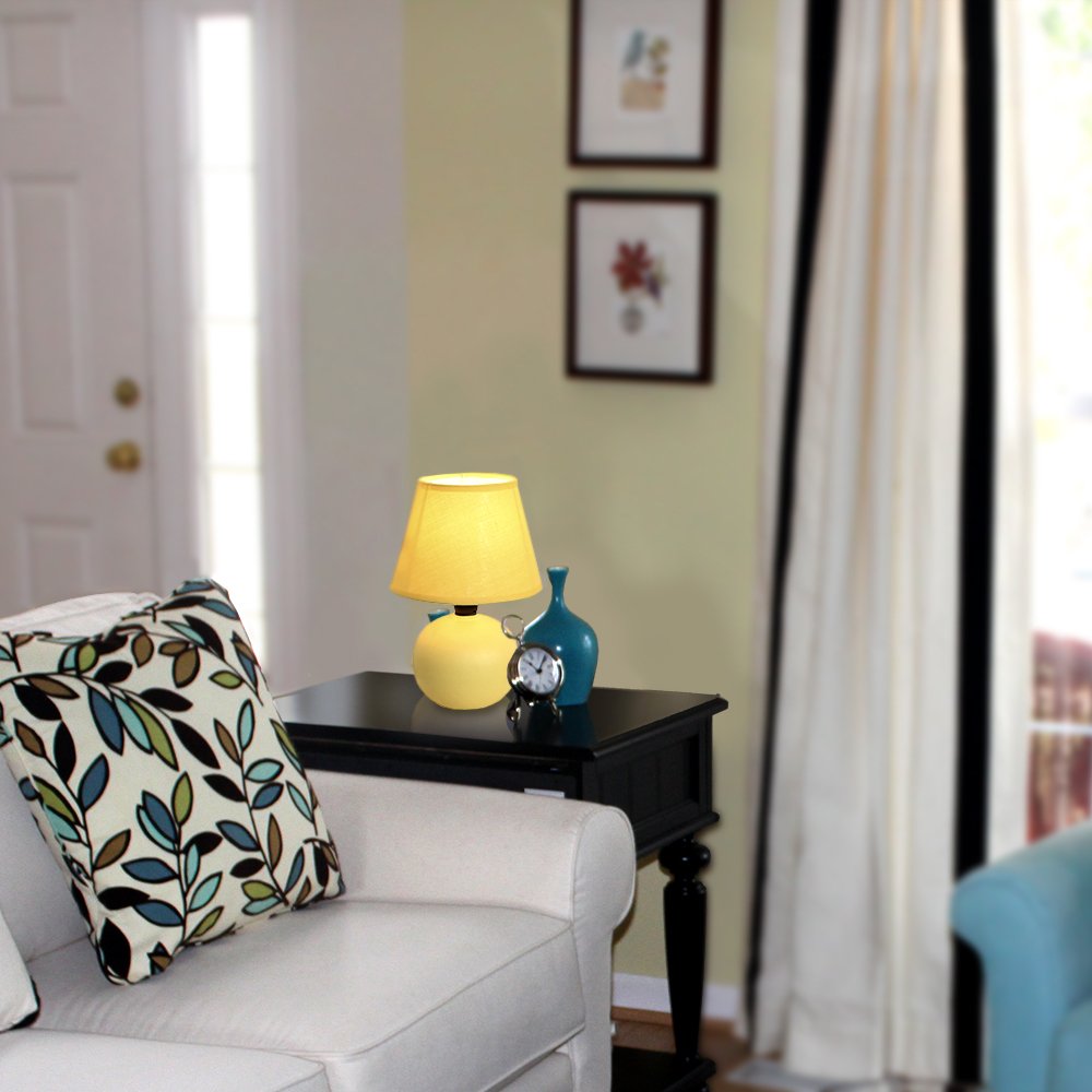 Simple Designs Lt2008-Ylw Mini Ceramic Globe Table Lamp With Matching Fabric Shade, Yellow