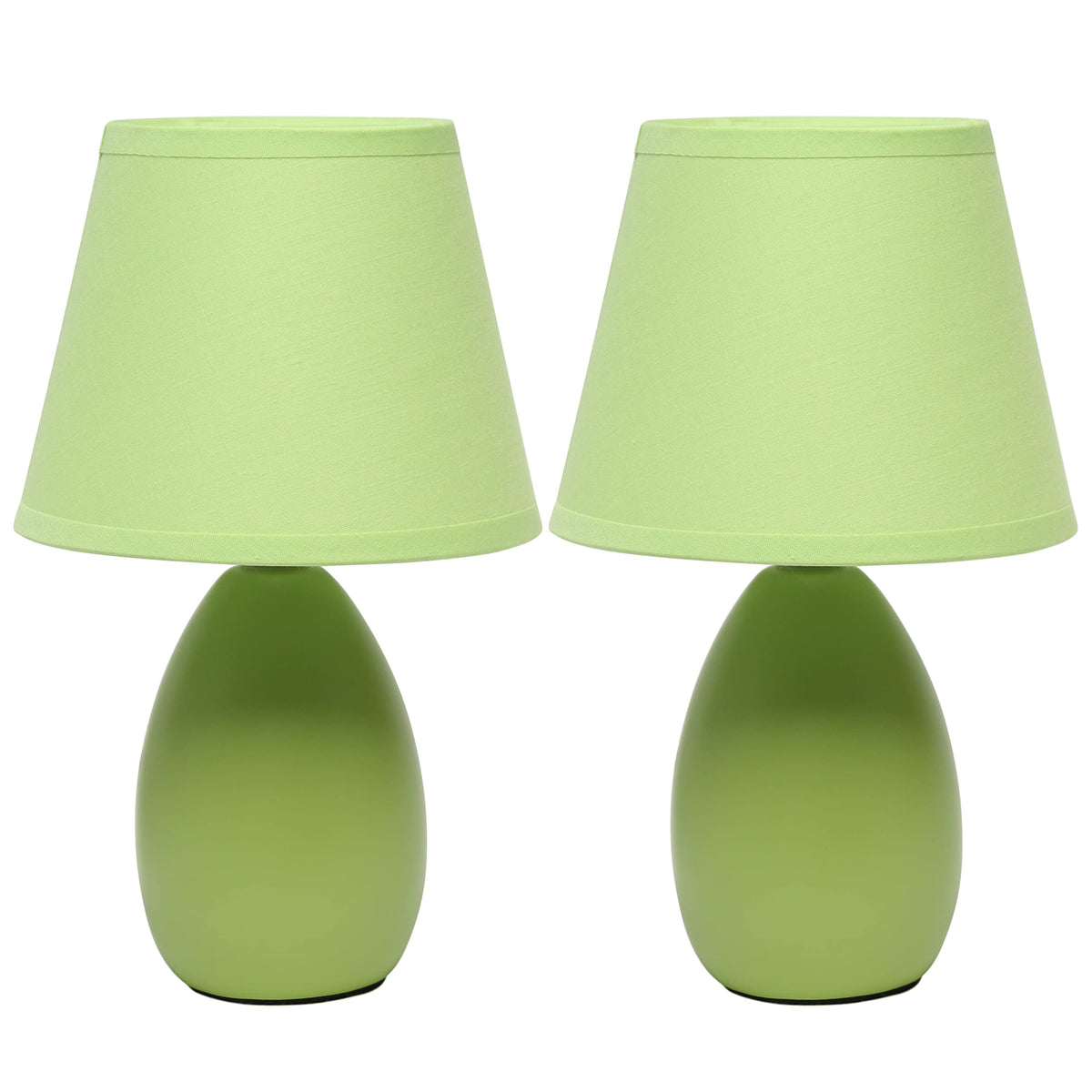 Simple Designs LT2009-GRN-2PK Mini Oval Egg Ceramic Bedside Table Lamp 2 Pack Set Green