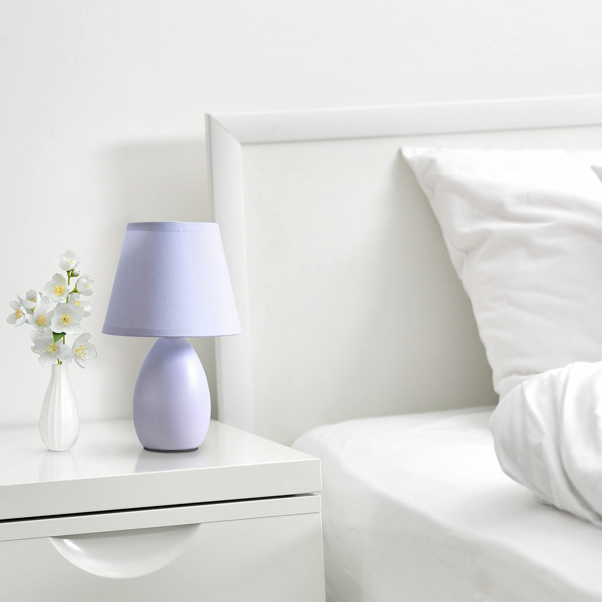 A lovely, inexpensive, and practical table lamp to meet your basic fashion lighting needs. This mini lamp features an oval shaped ceramic base and matching fabric shade. Perfect for living room, bedroom, office, kids room, or college dorm!