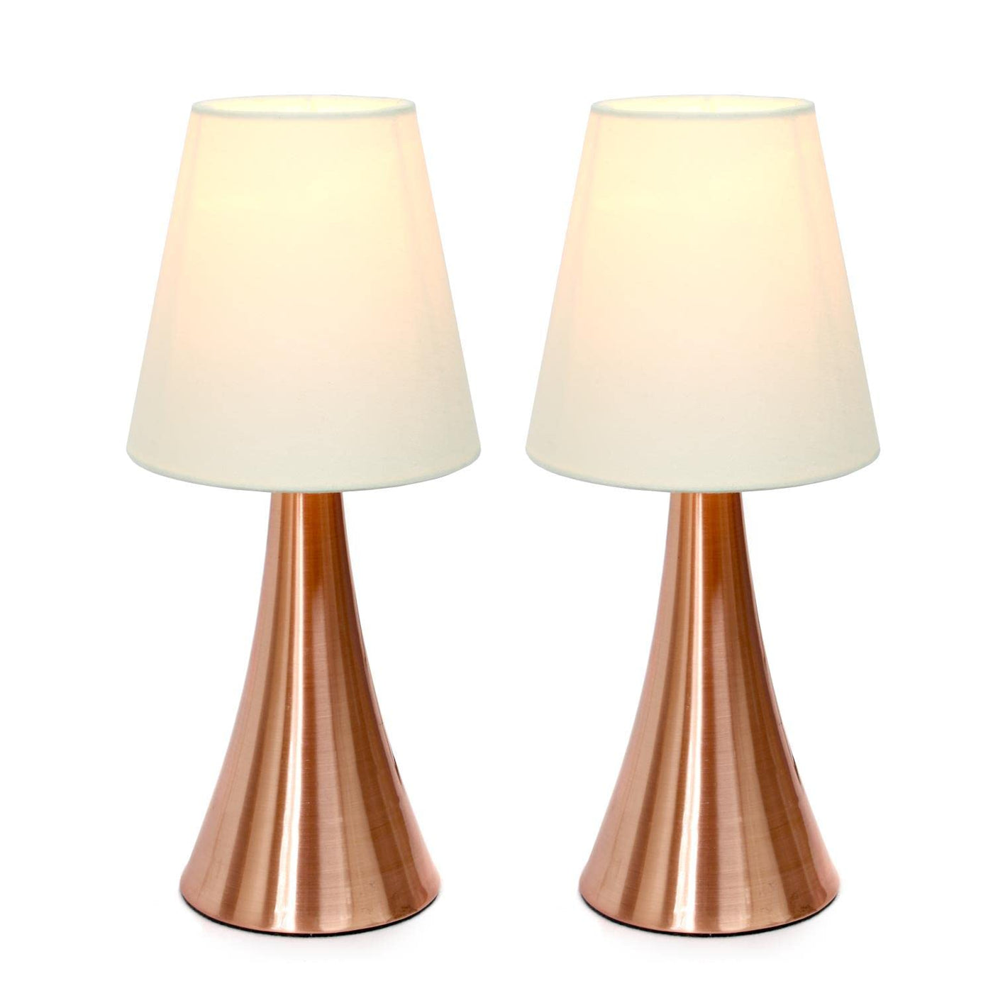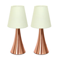 Simple Designs Lt2014-Crm-2Pk 12" Valencia 2 Pk Contemporary 4 Settings Touch Metal Mini Tapered Table Lamp Set W Fabric Shades For Décor,Nightstand,End Table,Bedroom,Living Room,Office,Foyer,Rgd Wht