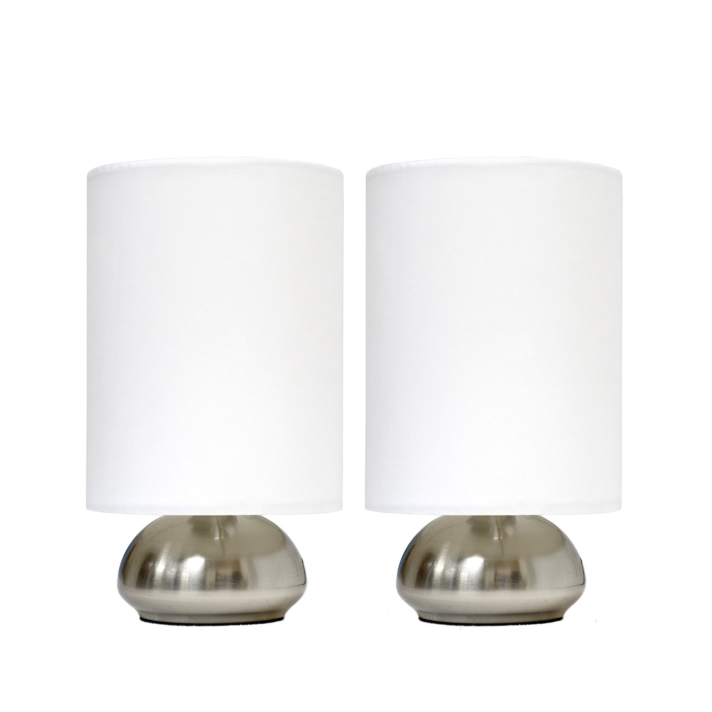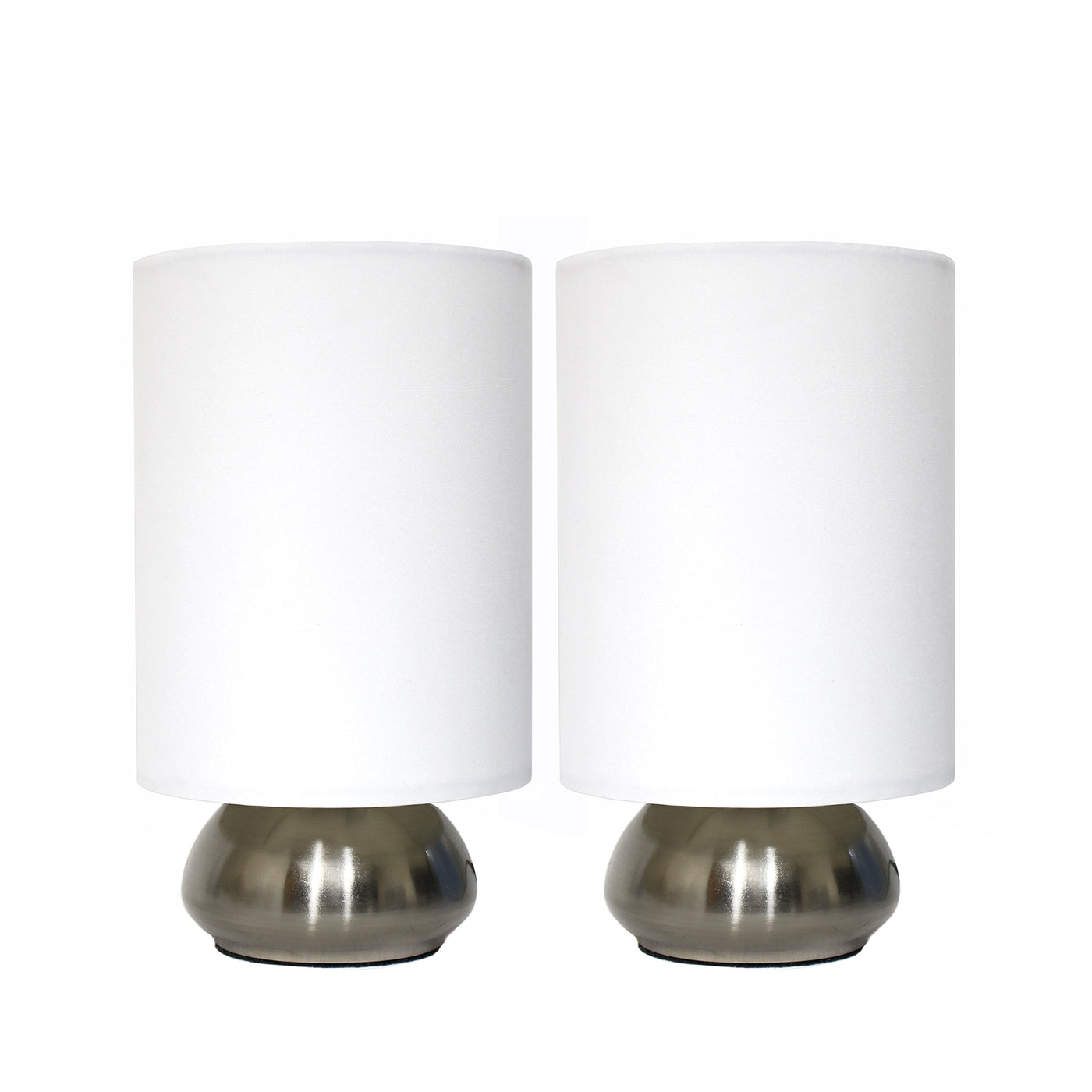 Simple Designs Lt2016-Ivy-2Pk Gemini Brushed Nickel 2 Pack Mini Touch Lamp Set With Fabric Shades, Ivory
