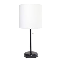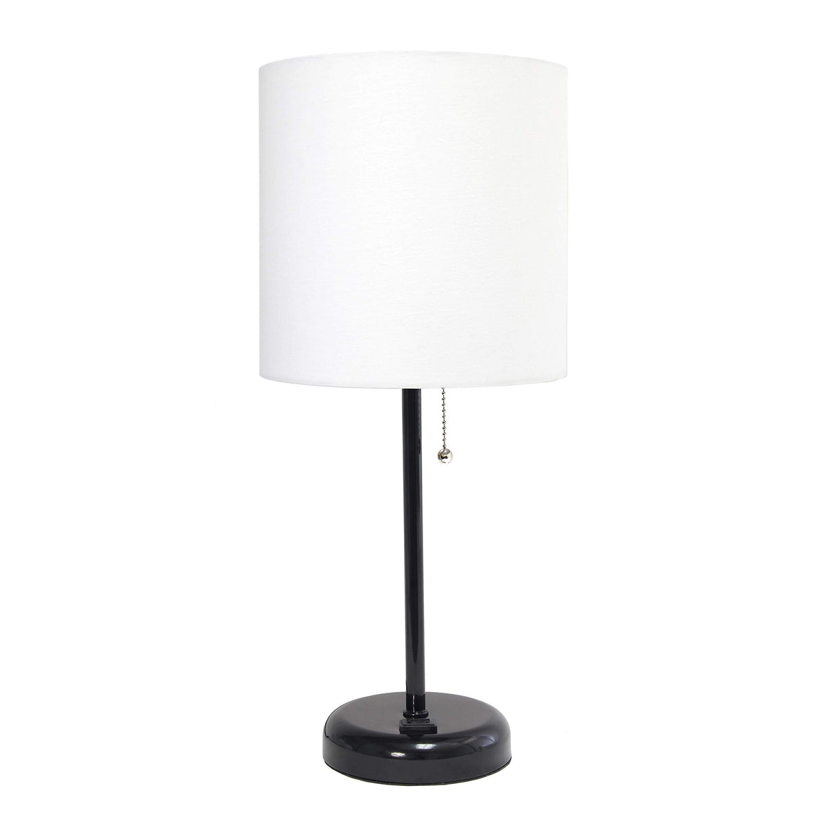 Simple Designs Lt2024-Baw Black Stick Table Desk Lamp With Charging Outlet And Drum Fabric Shade, White