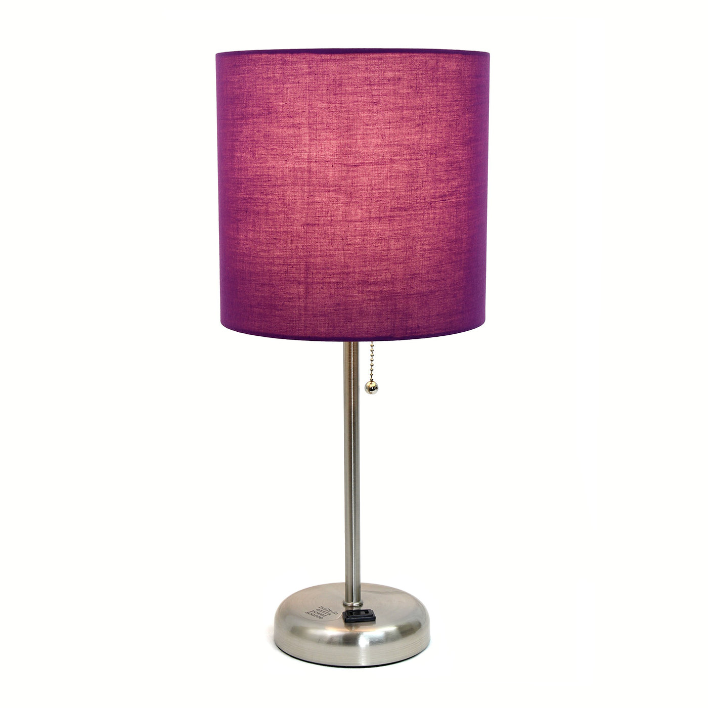 Simple Designs Lt2024-Prp Brushed Steel Stick Table Desk Lamp With Charging Outlet And Drum Fabric Shade, Purple