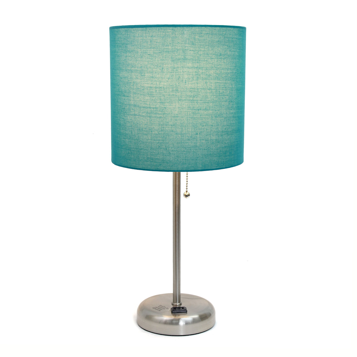 Simple Designs LT2024-TEL Brushed Steel Stick Table Desk Lamp with Charging Outlet and Drum Fabric Shade, Teal Shade (Pack of 4)