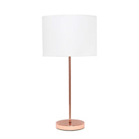 Rose Gold Base | Fabric shade | Convenient ON/OFF cord switch | Shade Diameter: 11" x Height: 23" | Uses 1 x 60W equivalent type A medium base bulb (not included) | Available in additional color/finish options.