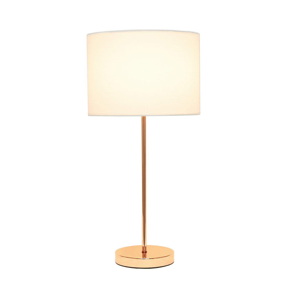 Simple Designs Lt2040-Rgd 23" Standard Metal Stick Lamp With Round Base And Drum Fabric Shade For Home Décor, Bedroom, Office, Dorm, Living Room, Entryway, Foyer, Rose Gold