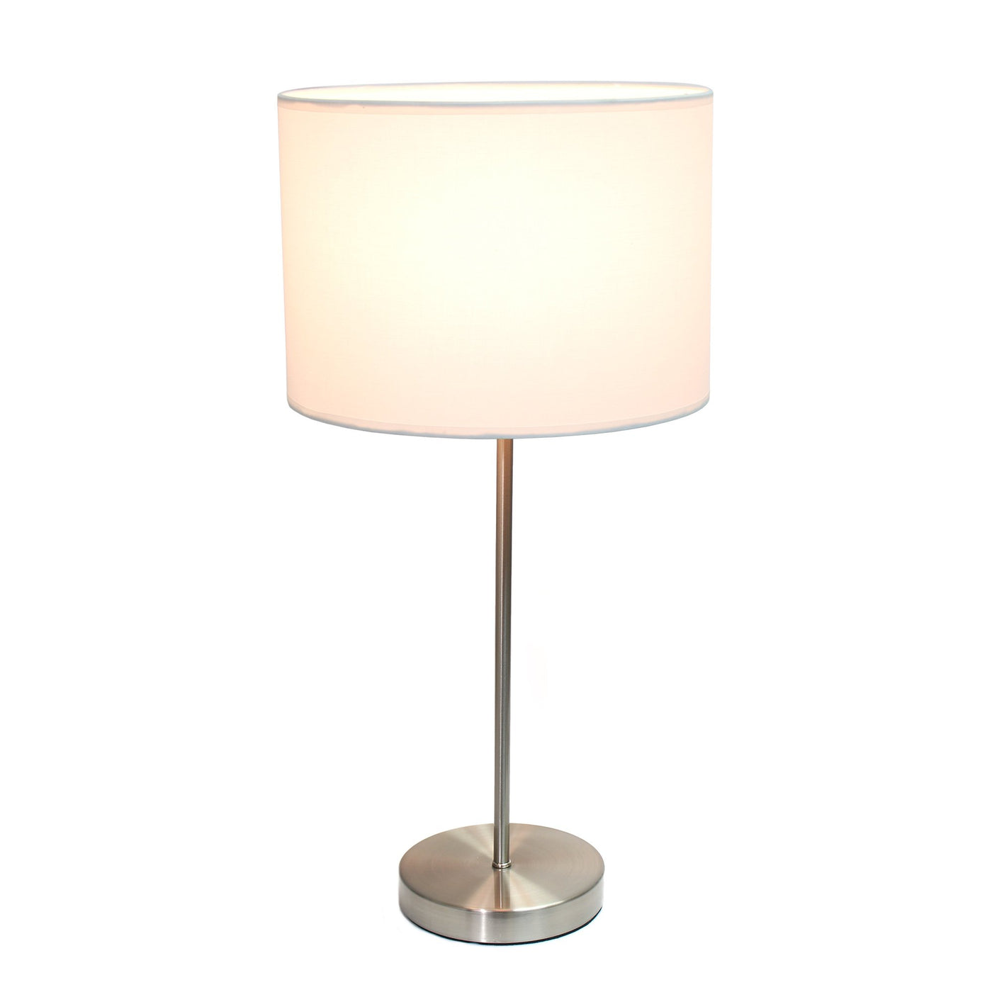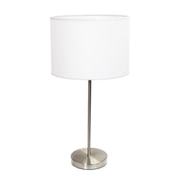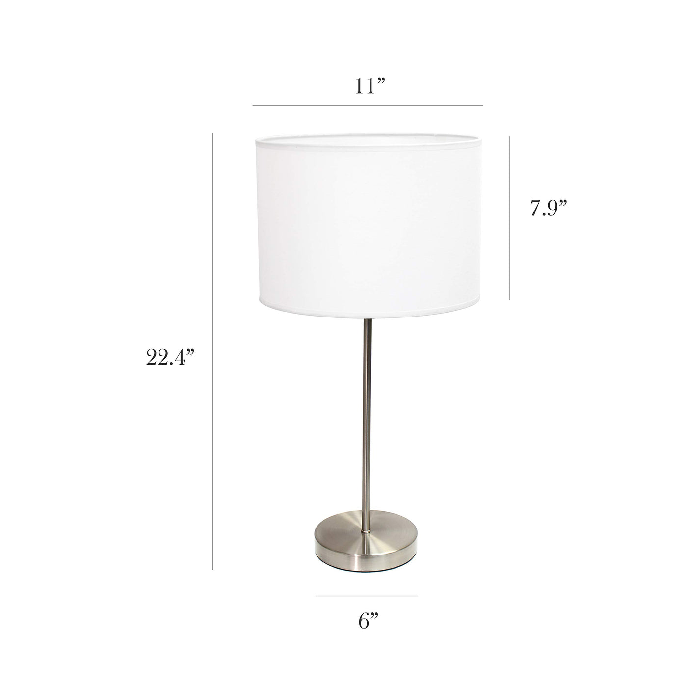 Simple Designs Lt2040-Wht 23" Standard Metal Stick Lamp With Round Base And Drum Fabric Shade For Home Décor, Bedroom, Office, Dorm, Living Room, Entryway, Foyer, Brushed Nickel