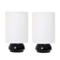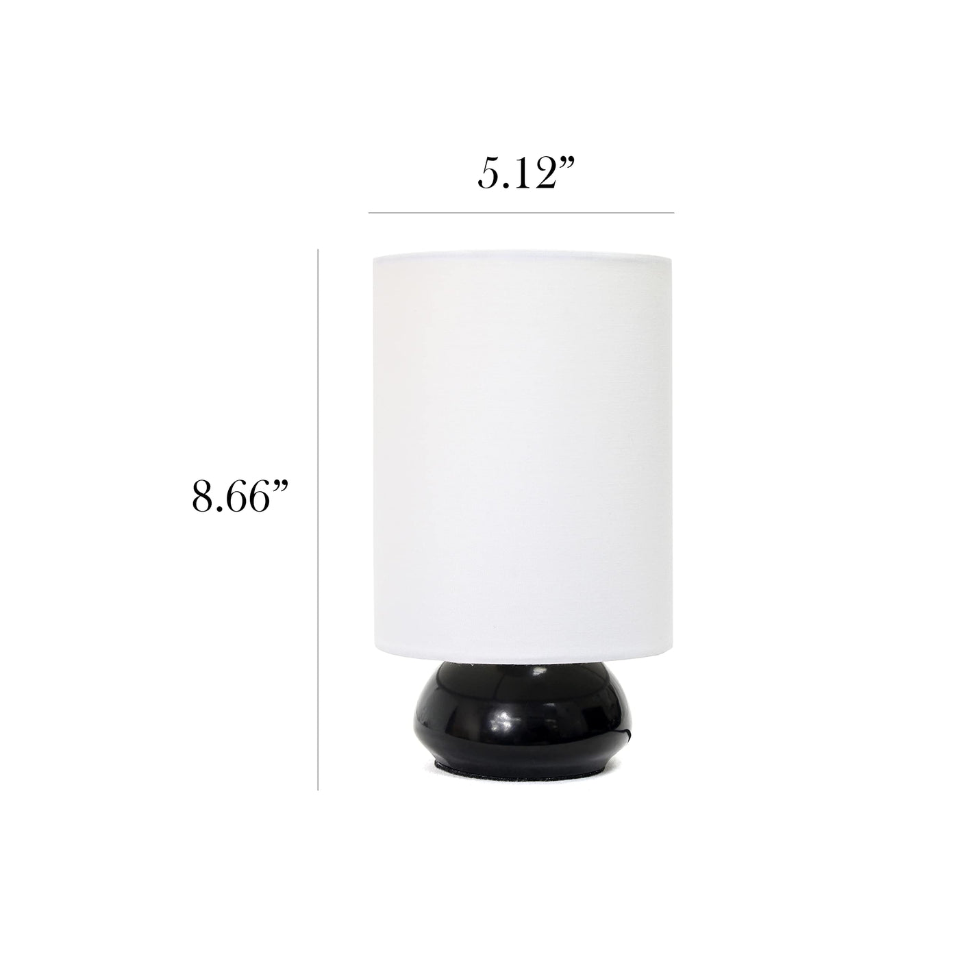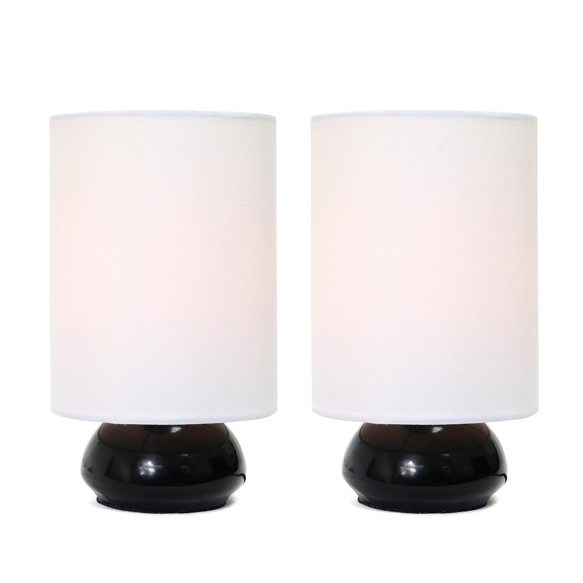 Simple Designs Lt2043-Blk-2Pk 9" Gemini 2 Pk Contemporary 4 Settings Touch Metal Mini Round Table Lamp Set W Fabric Shades For Décor,Nightstand,End Table,Bedroom,Living Room,Office,Foyer, Blk & Wht