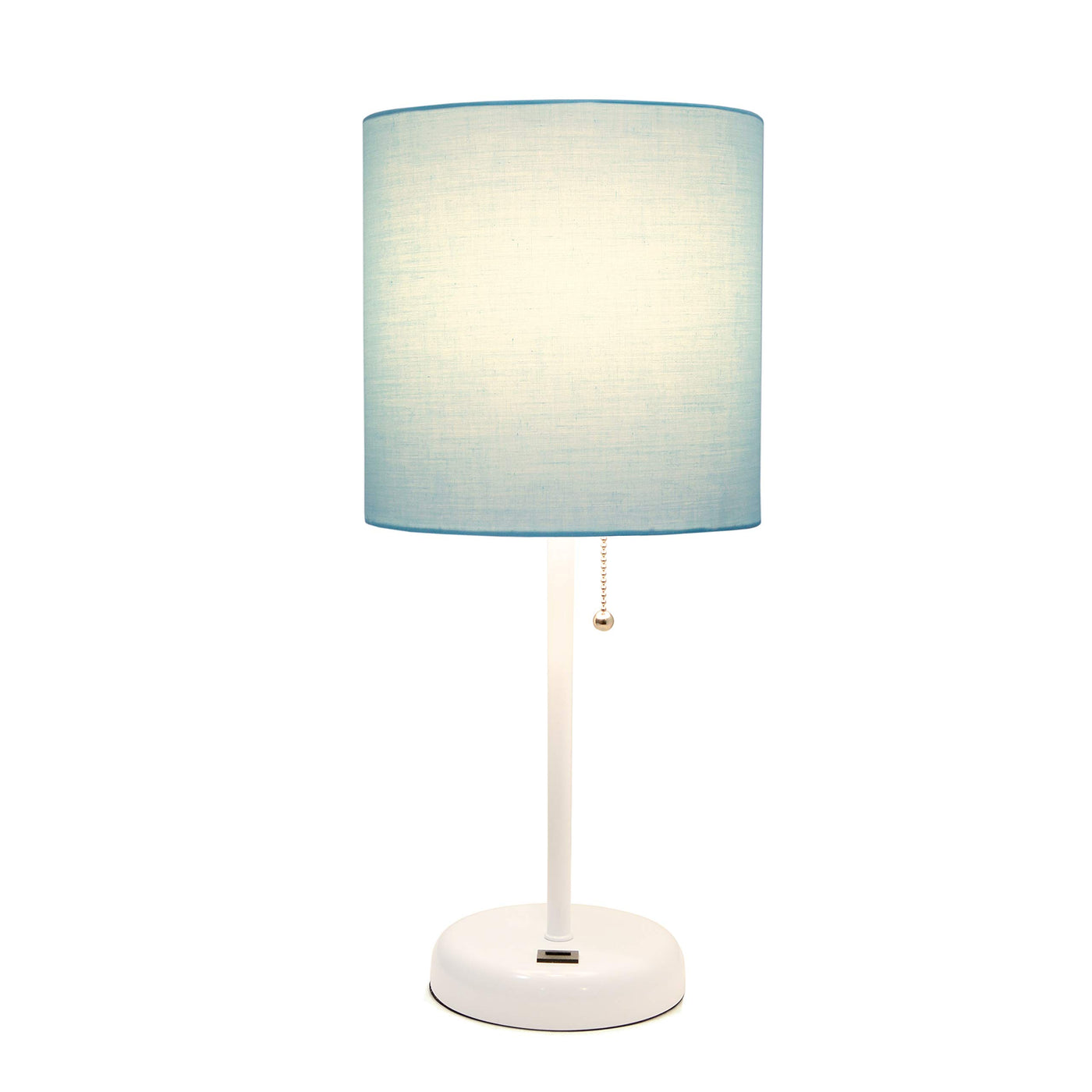 Simple Designs Lt2044-Aow White Stick Table Desk Lamp With Usb Charging Port And Drum Fabric Shade, Aqua Shade