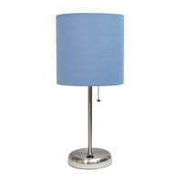 Simple Designs Lt2044-Blu Brushed Steel Stick Table Desk Lamp With Usb Charging Port And Drum Fabric Shade, Blue Shade
