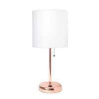 Simple Designs Lt2044-Rgd Rose Gold Stick Table Desk Lamp With Usb Charging Port And Drum Fabric Shade, White Shade