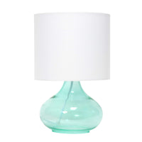 Simple Designs LT2063-AOW Small Glass Raindrop Bedside Table Lamp with White Fabric Shade Aqua