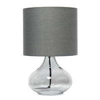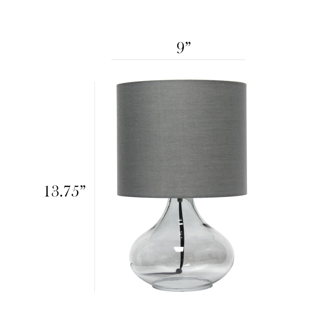 Simple Designs Lt2063-Smg Small Glass Raindrop Bedside Table Lamp With Gray Fabric Shade, Smoke