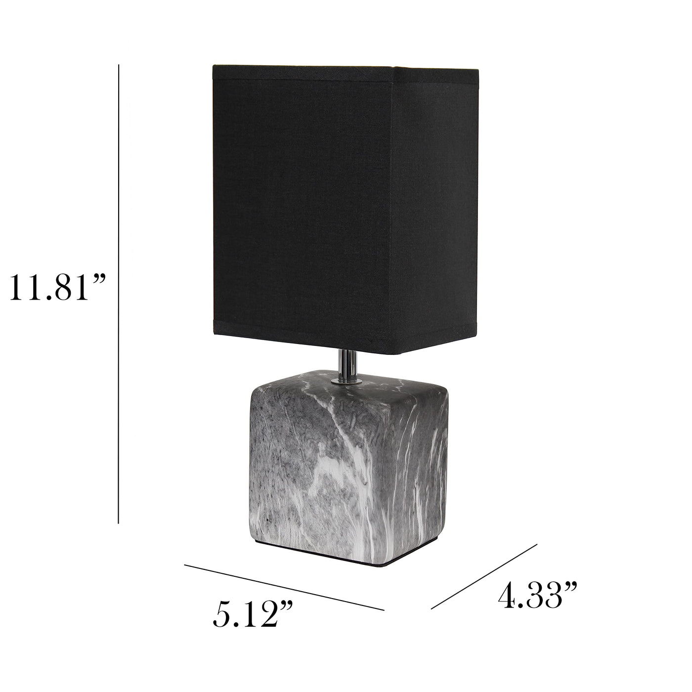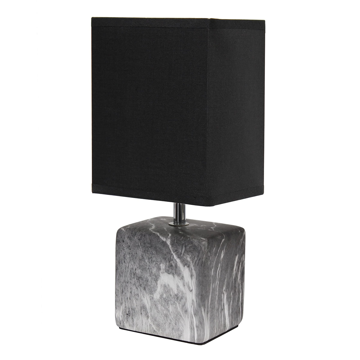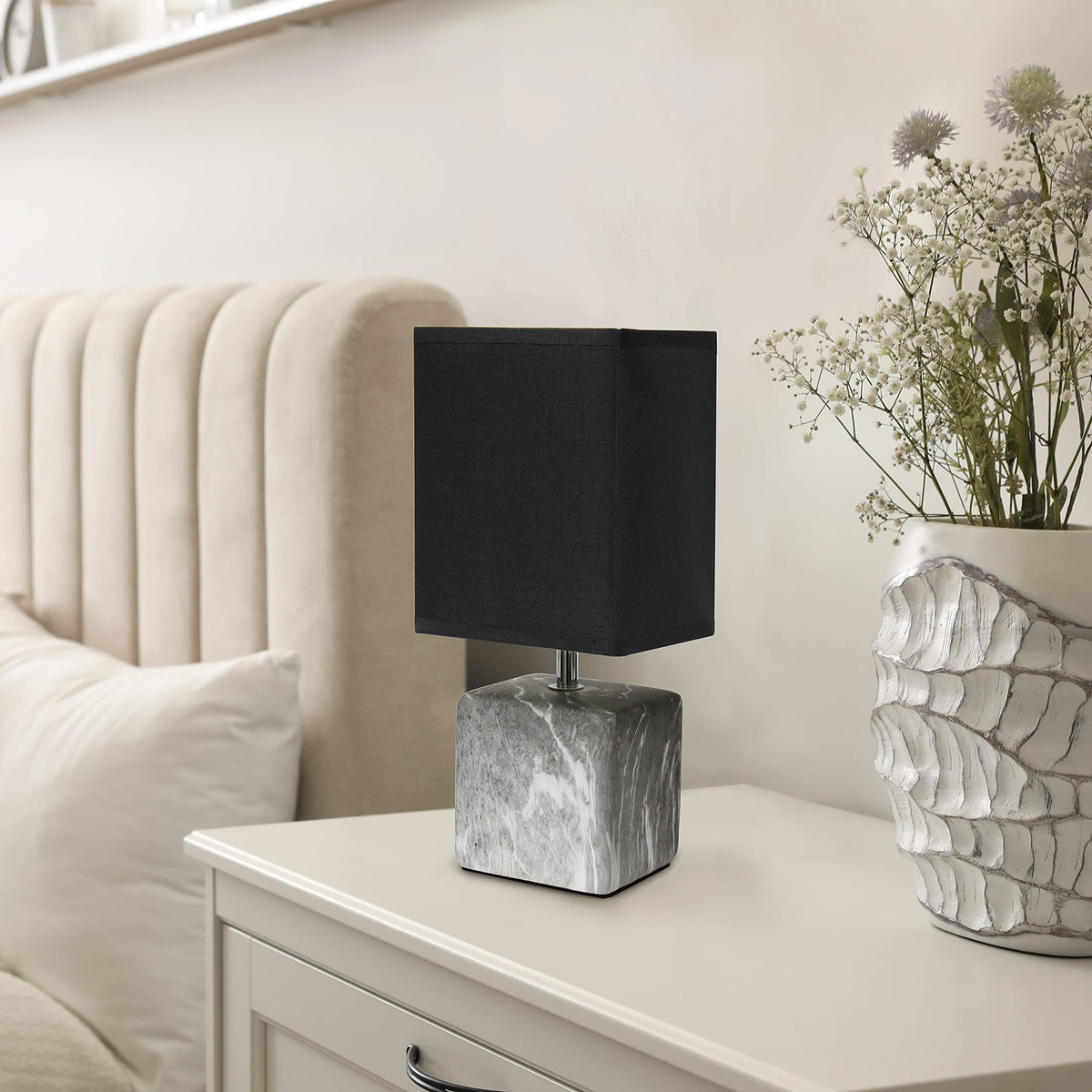 Simple Designs Lt2071-Bob Mini Petite Gray White Marbled Ceramic Bedside Table Lamp With Black Shade