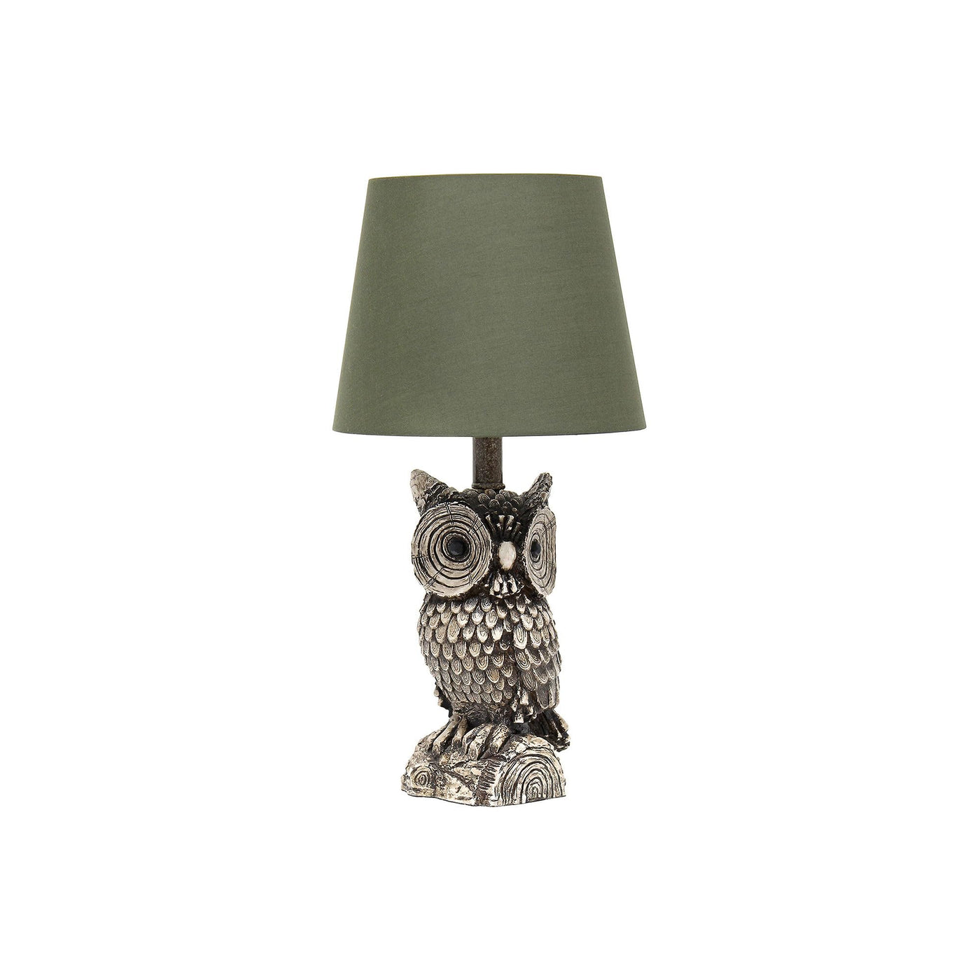 UNIQUE STYLE LAMP: A carefully crafted owl base full of realistic detail sits beneath a tapered green fabric linen shade. Ideal for your child's room, nursery, or even as an accent light in common spaces! | ACCESSIBLE SWITCH: An easily accessible gear (rotary) switch is located on the cord of this table lamp to allow a quick and easy on/off function as needed. Lamp is also equipped with a 5 foot black plug in cord rooted at the base. | PRODUCT SIZE: Overall product size is L: 9.95" x W: 9.95" x H: 19.85" and weighs 2.87 lbs. The shade of this lamp measures Dia: 9.95" x H: 8". | ASSEMBLY & USE: Product ships assembled and will only require you to secure the lamp shade to the base using the provided socket nut prior to use. | BULB REQUIREMENT SOLD SEPARATELY: This table lamp uses 1 x 40 watt equivalent type A19 E26 medium base bulb, which is not included in your purchase but can be easily found online or your local hardware store. | ADDITIONAL SHADE COLOR OPTIONS AVAILABLE: This lamp is sold in an additional shade color option. If this specific shade color doesn't perfectly match your space, make sure to check out all available colors!