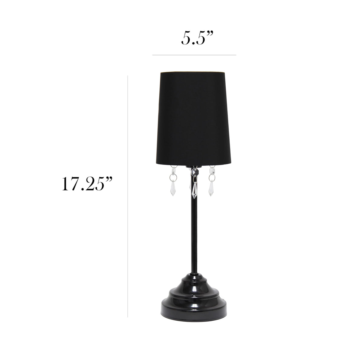 Q: What are the dimensions of the Simple Designs LT3018-BLK Table Lamp?A: The dimensions of the lamp are as follows: Height: 17.25 inches and Shade diameter: 5.8 inches, making it a perfect size for various spaces.