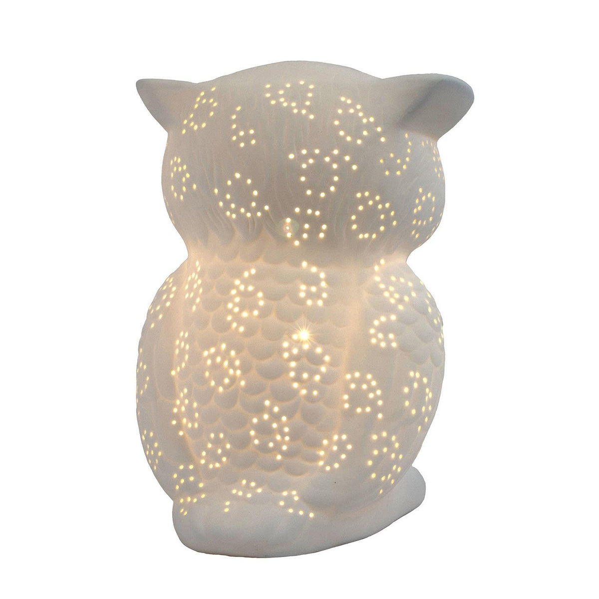 Simple Designs Lt3027-Wht Porcelain Fun Shaped Wise Owl Table Lamp, White