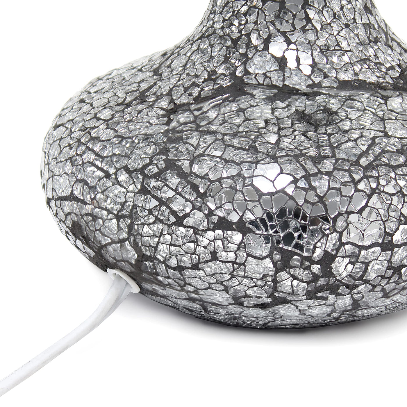 Simple Designs Lt3039-Blk 14.17” Contemporary Mosaic Tiled Glass Genie Standard Table Lamp With Matching Fabric Shade For Home Décor, Bedroom, Living Room, Foyer, Office, Black/Silver
