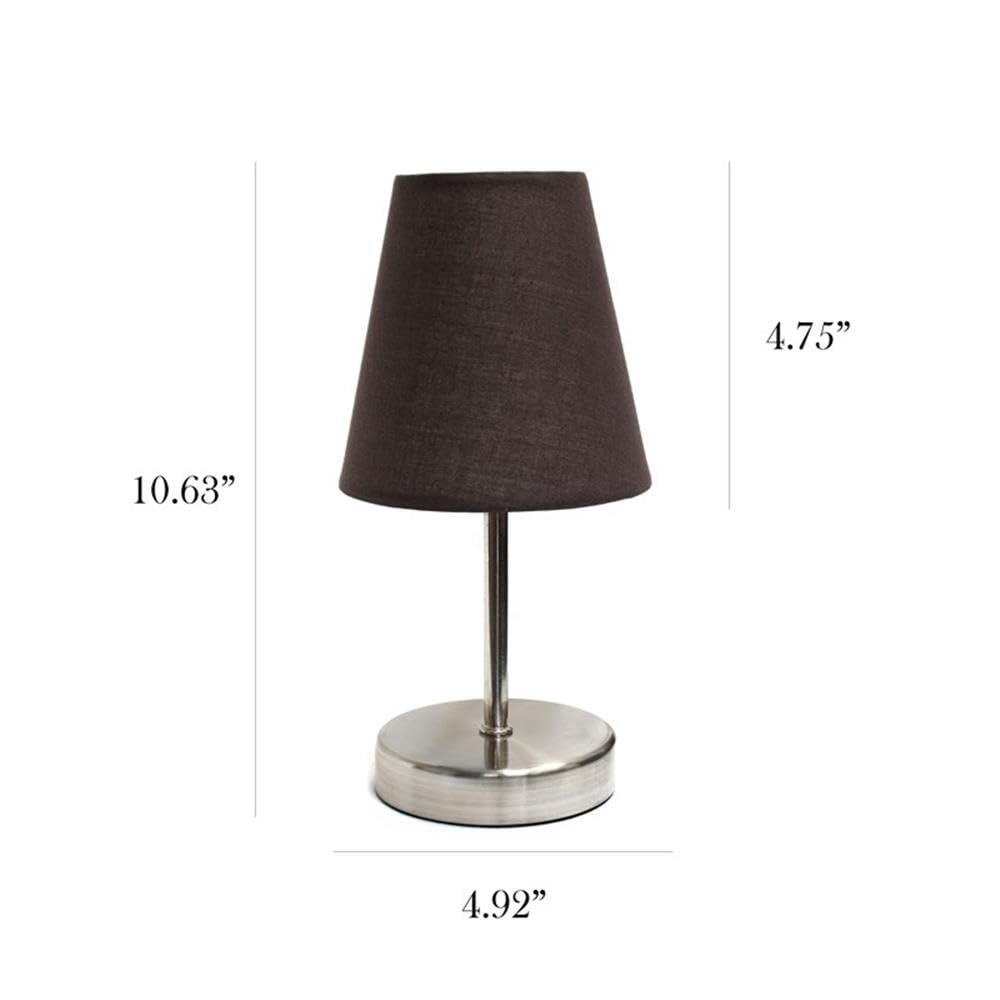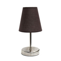 - Sand nickel metal mini base - Fabric shade - Perfect for living room, bedroom, office, kids room, or college dorm - Height: 10.63" Shade diameter: 4.92" - Uses 1 x 60W Type B Candelabra Base Bulb (not included) - Lightweight.