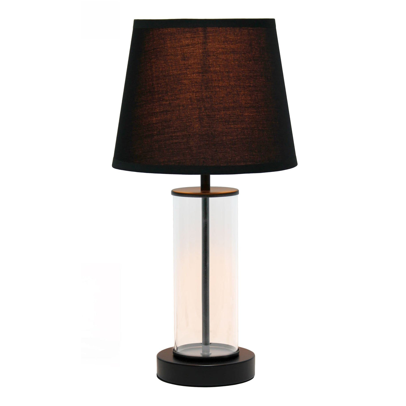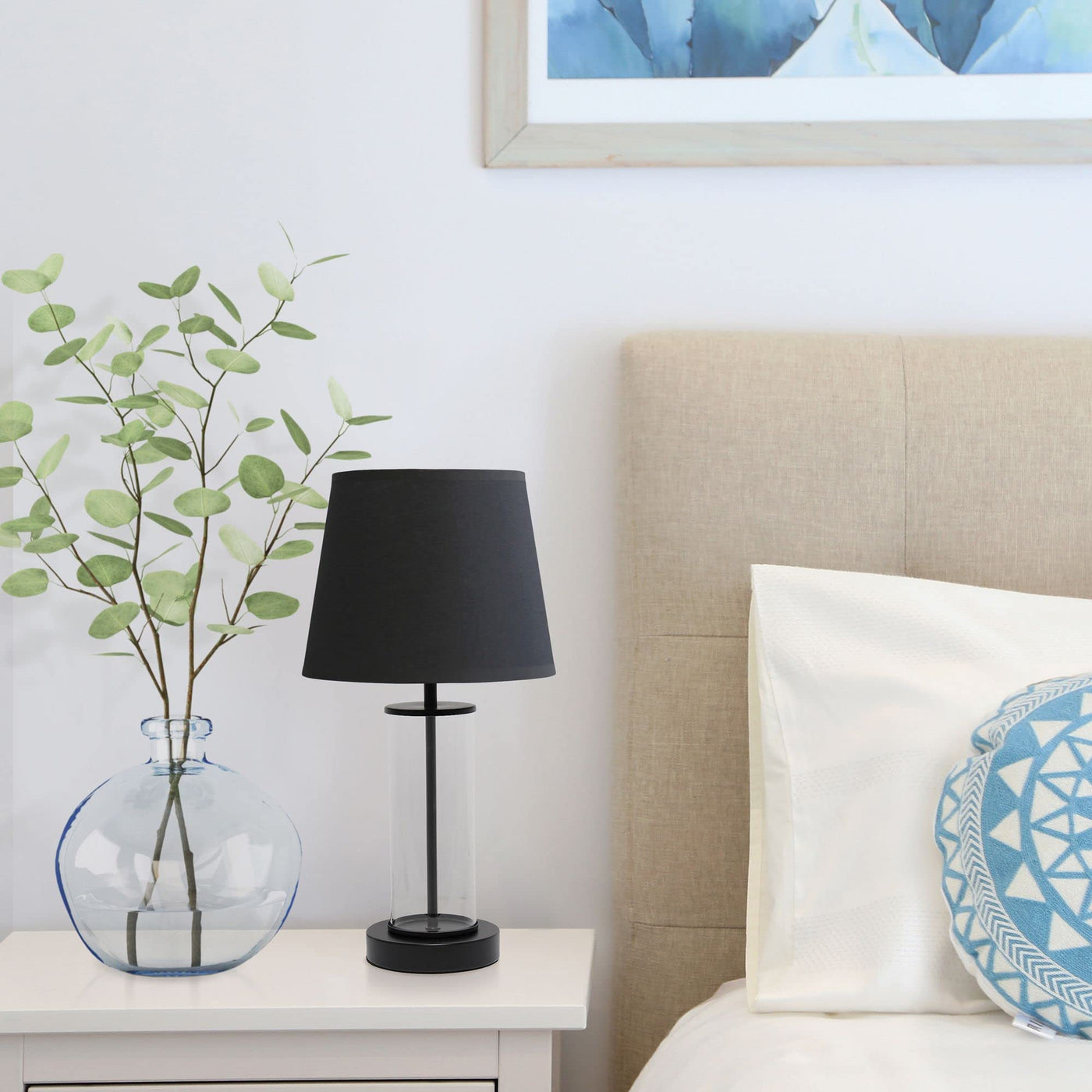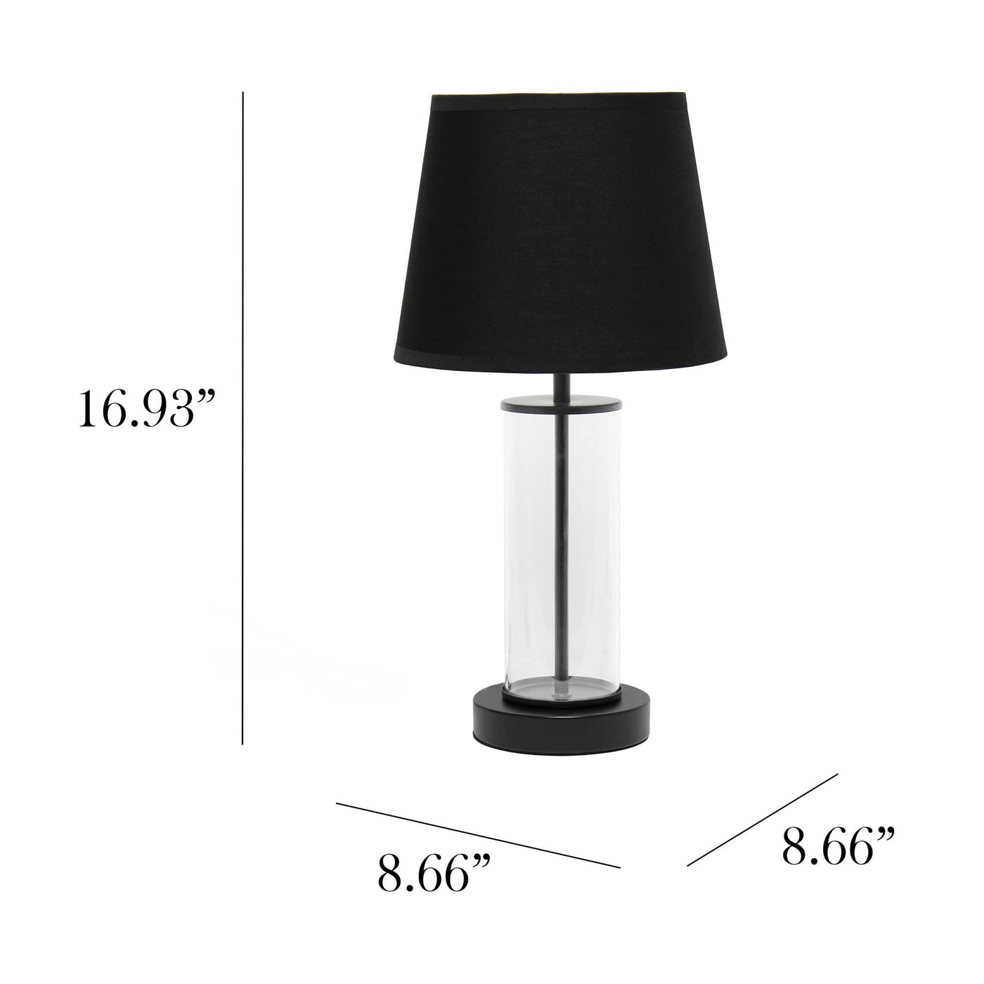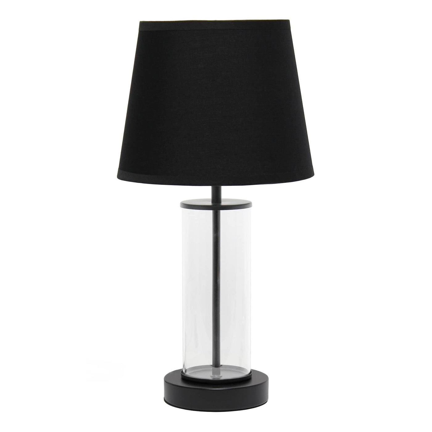 Simple Designs Modern Coastal Bedside Table Lamp, Black Base & Shade, Glass, 16.93" Height