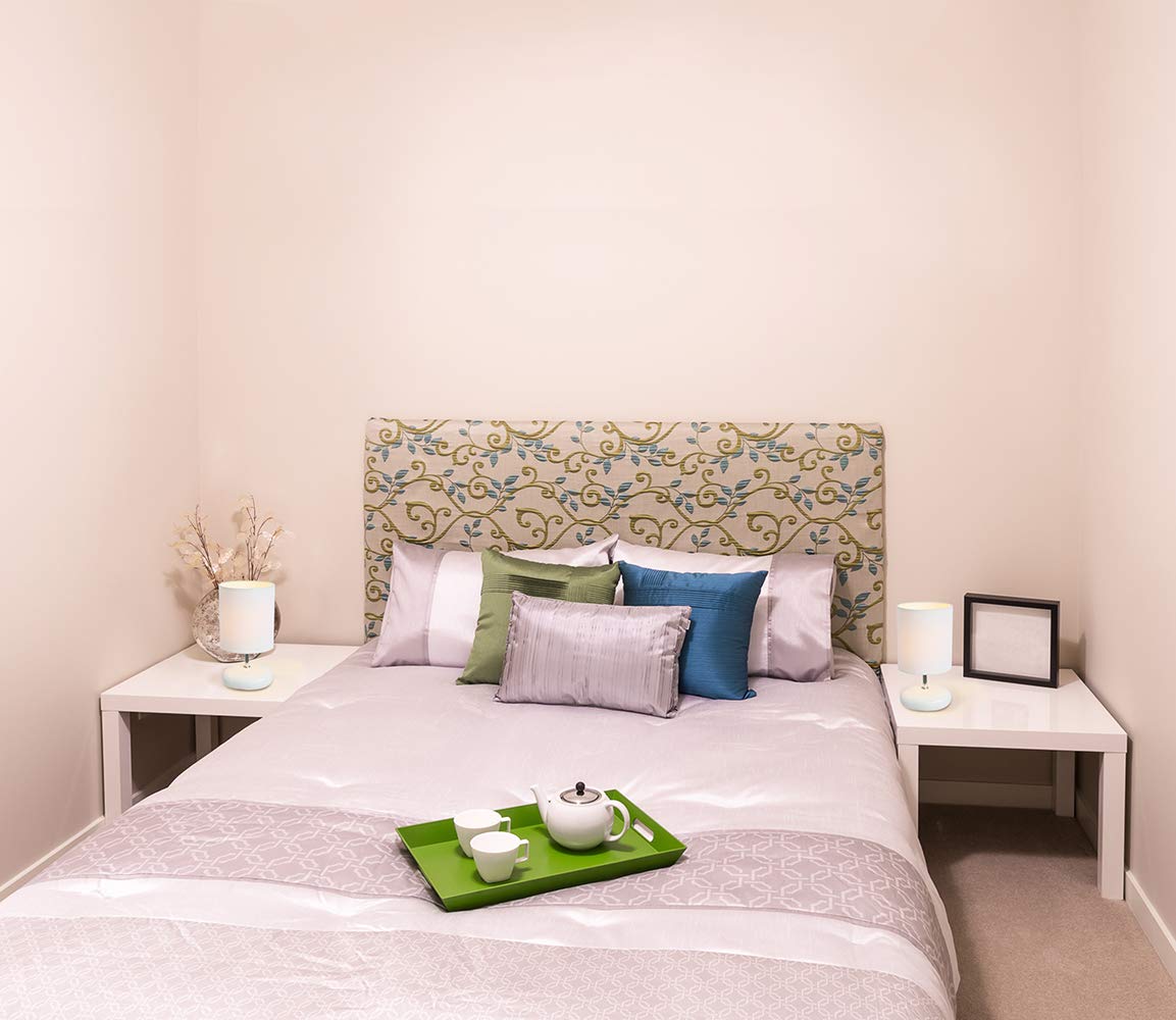 Q: What are the dimensions of each lamp in the set?A: Each lamp in the Simple Designs LT2005-WHT-2PK set measures 10.24 inches in height with a shade diameter of 5.5 inches, making them perfect for bedside tables or small spaces.