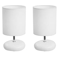 Simple Designs White Ceramic Bedside Table Lamp Set - 2 Pack, Small Stone Look, Lt2005-Wht-2Pk