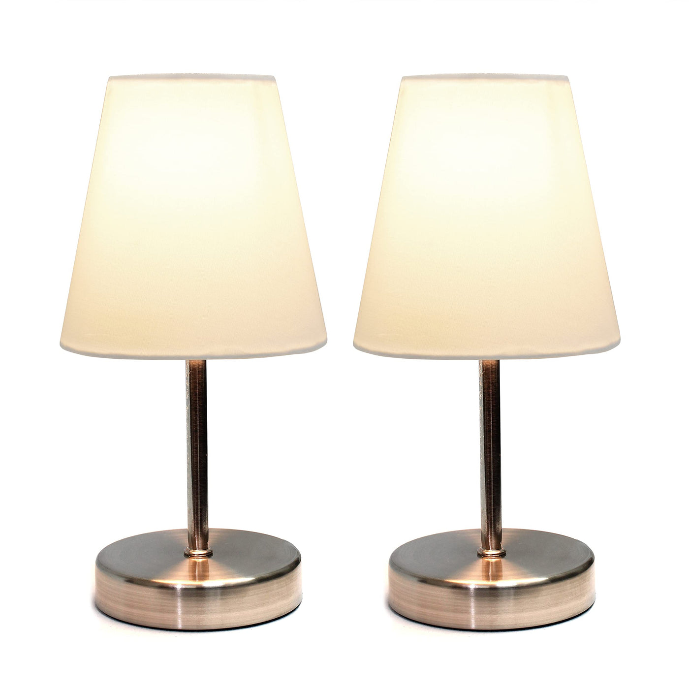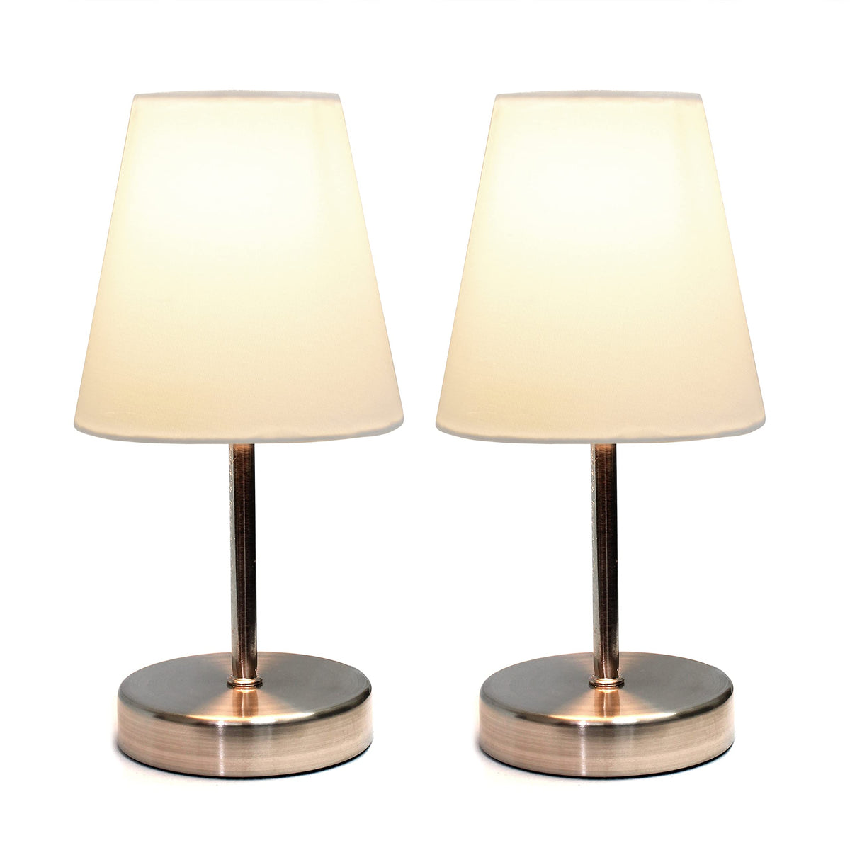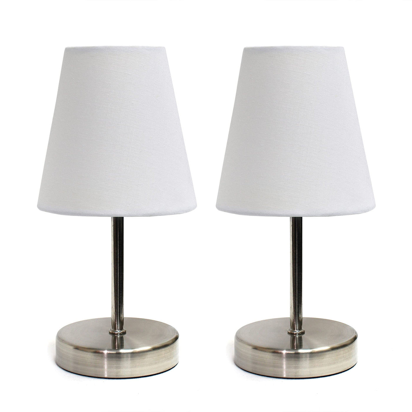 Simple Designs White Mini Table Lamp Set, 2 Pack With Fabric Shade - Sand Nickel Finish