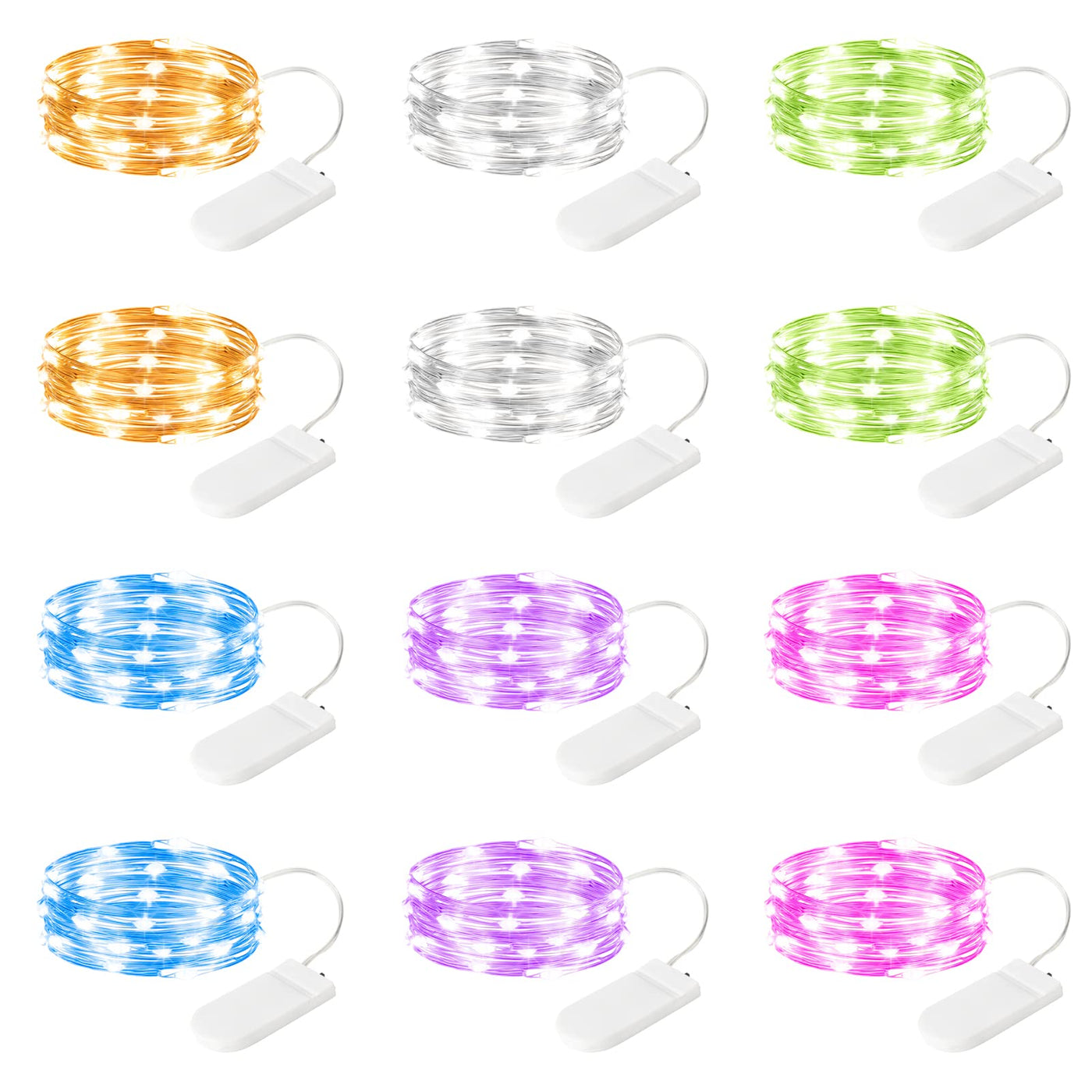 Sinamer 12 Pack Fairy Lights Battery Operated String Lights, 7Ft 20 Led Fairy String Lights, Waterproof Copper Wire Firefly Starry String Lights For Diy Wedding Party Bedroom Christmas (Multicolor)