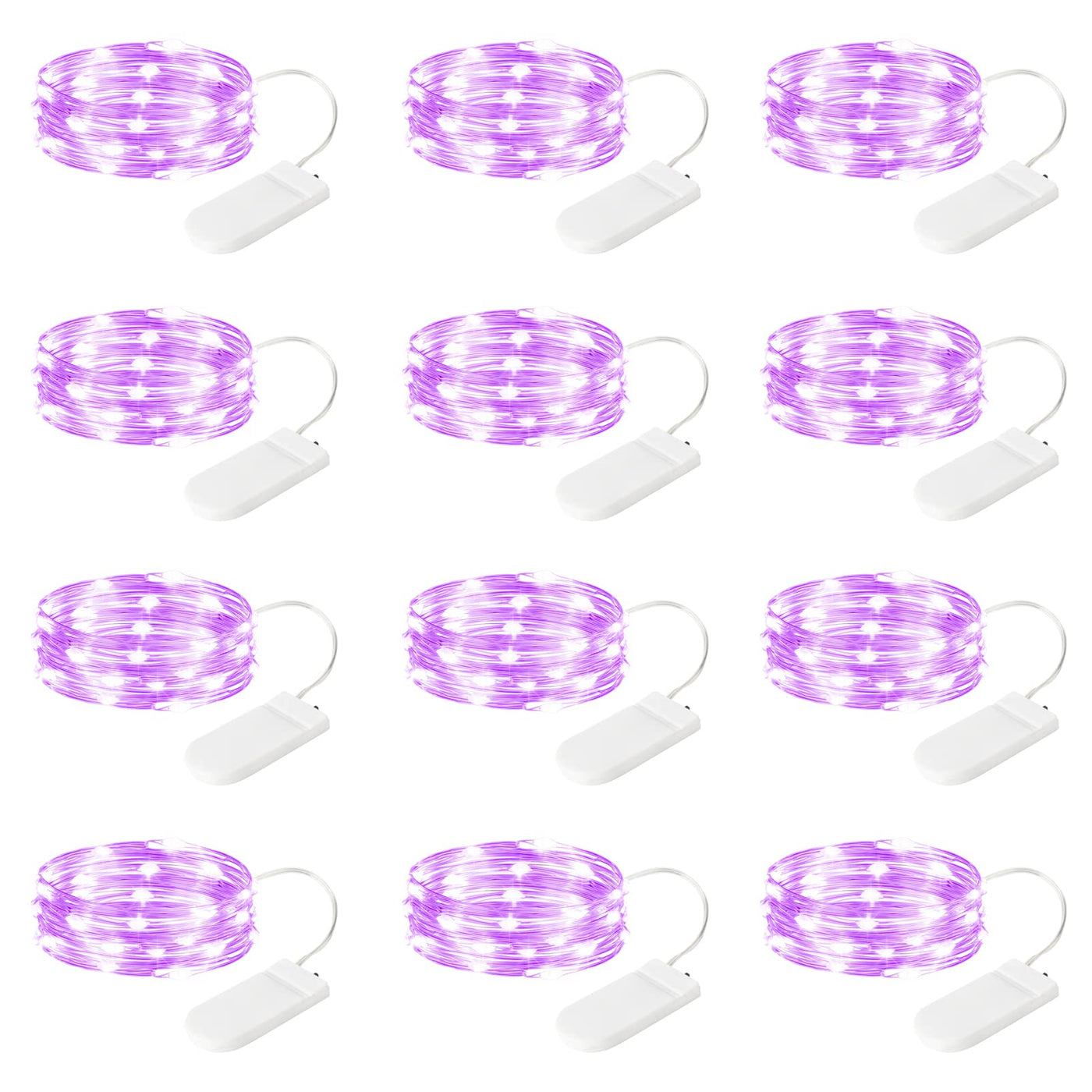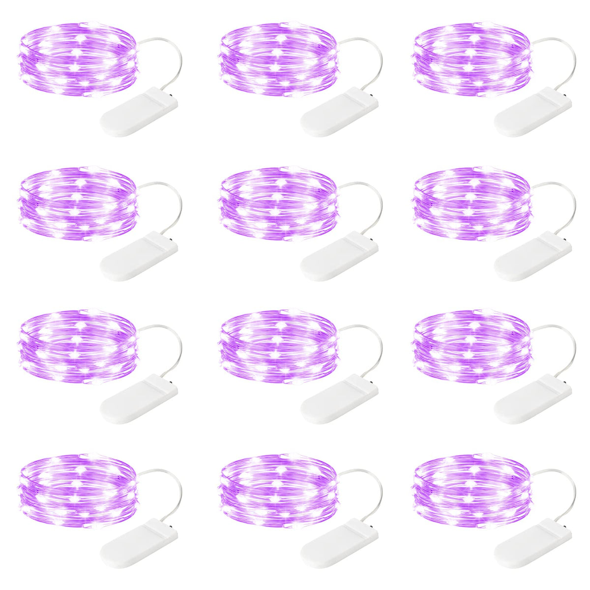 Sinamer 12-Pack Led Fairy Lights 7 Feet Battery Powered Waterproof Silver Wire 20 Slim Copper Wire Pastel Lights For Diy Wedding Party Bedroom Patio Easter Christmas (Purple)