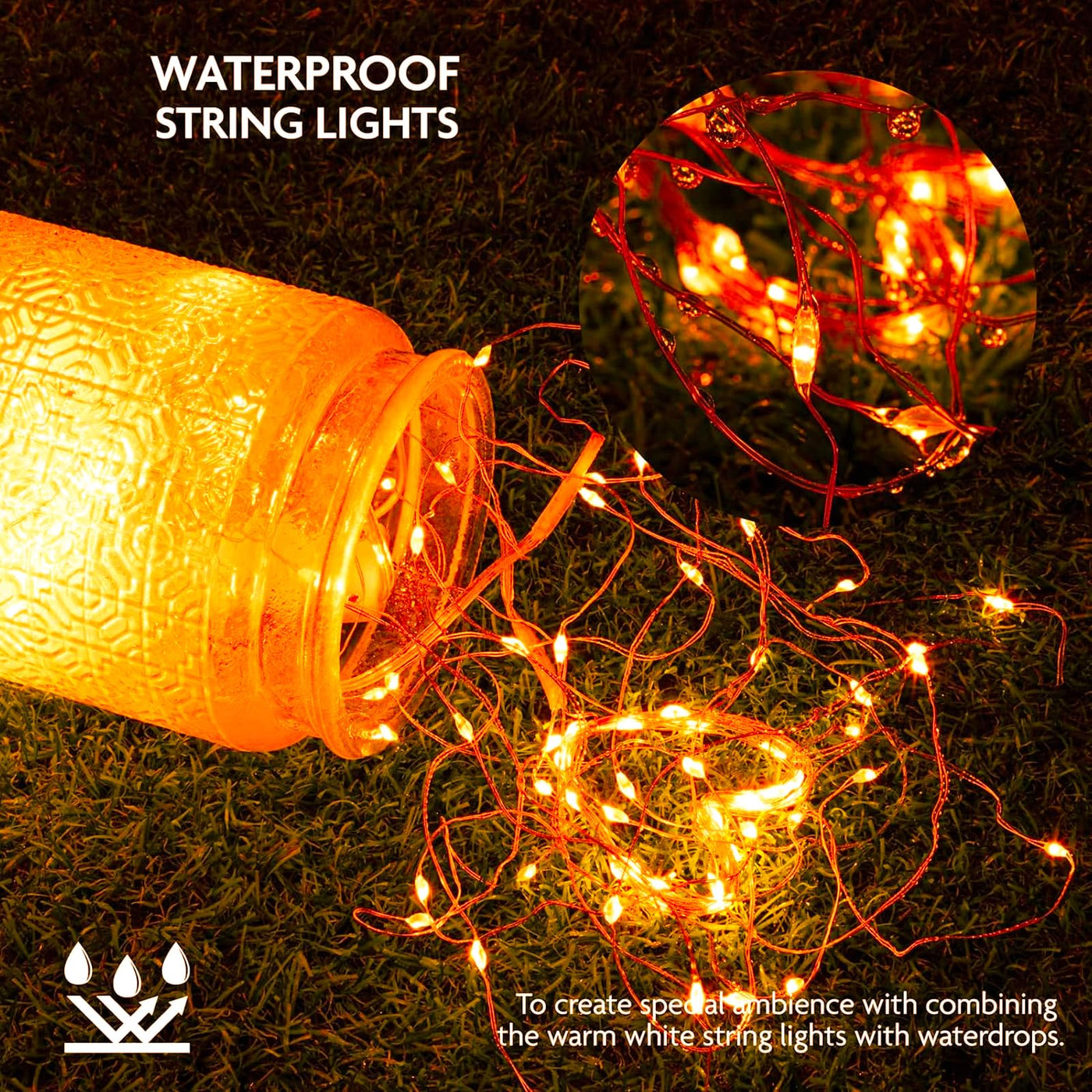 Q: Are the SINAMER Fairy Lights waterproof, and can they be used outdoors?A: Yes, the SINAMER Fairy Lights are waterproof, making them suitable for outdoor use. However, the battery box is not waterproof, so it should be kept dry.