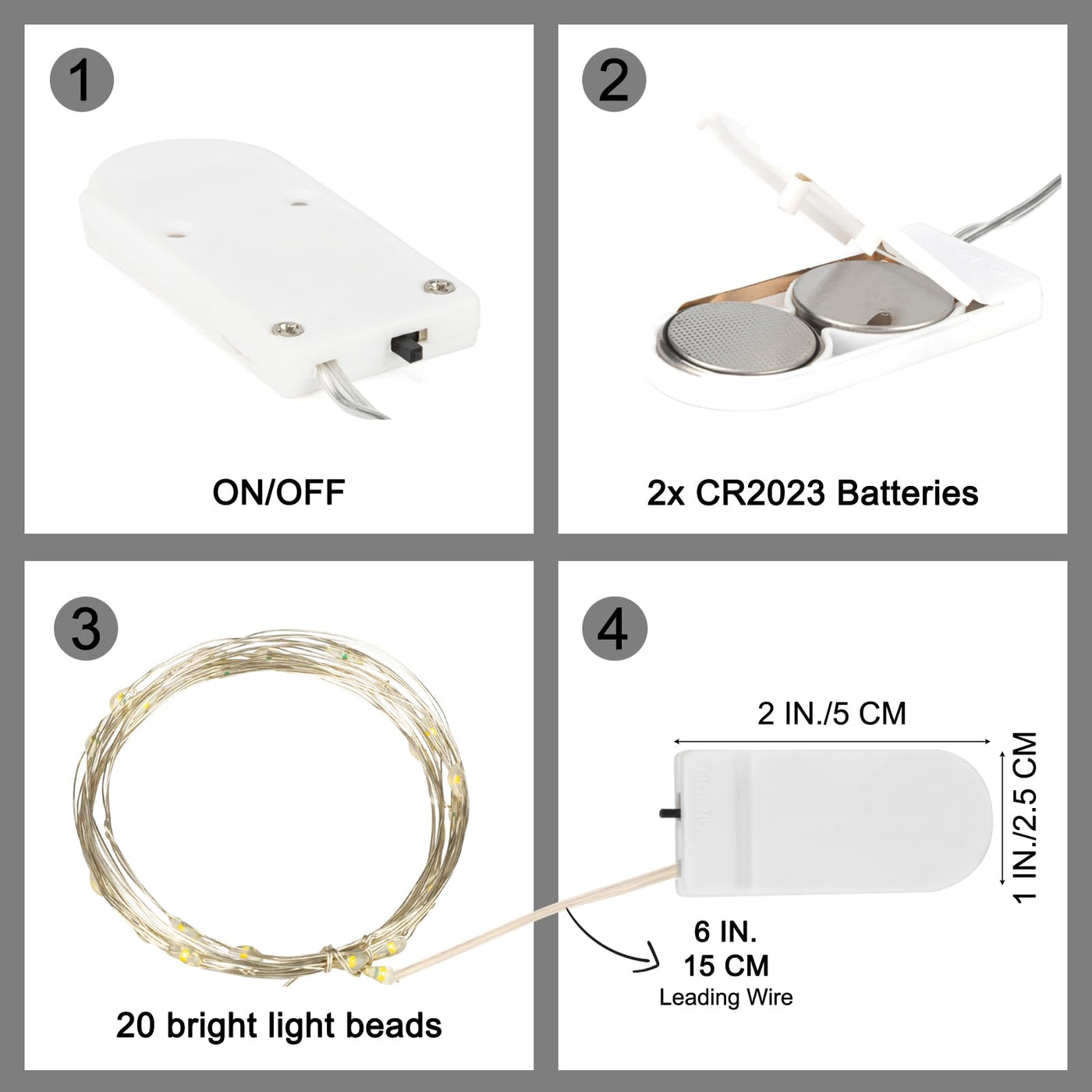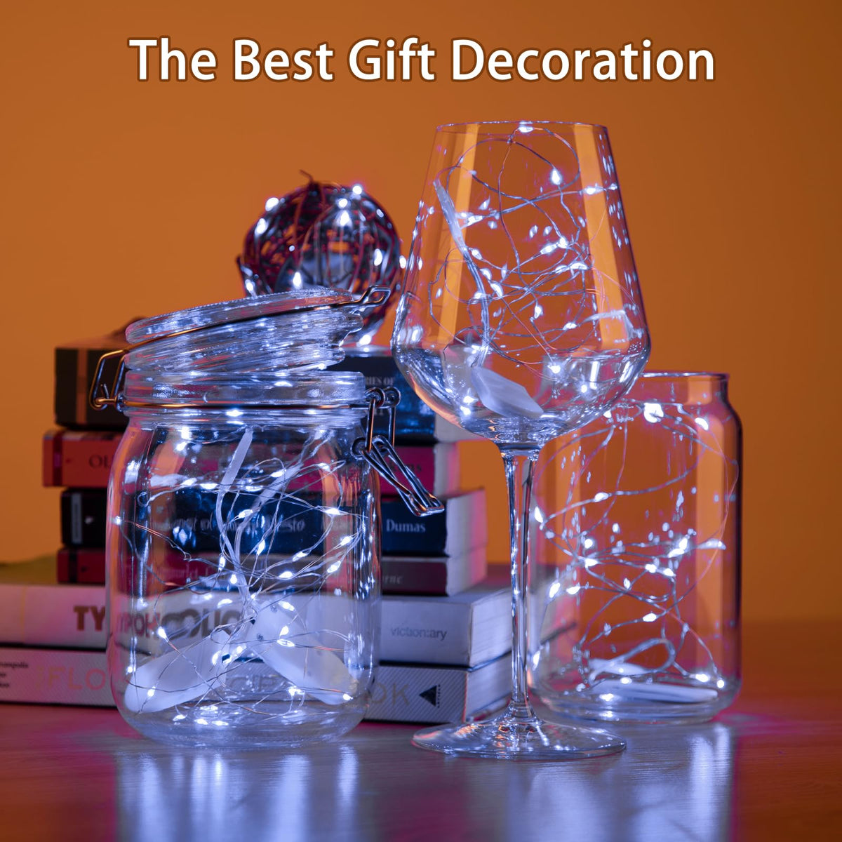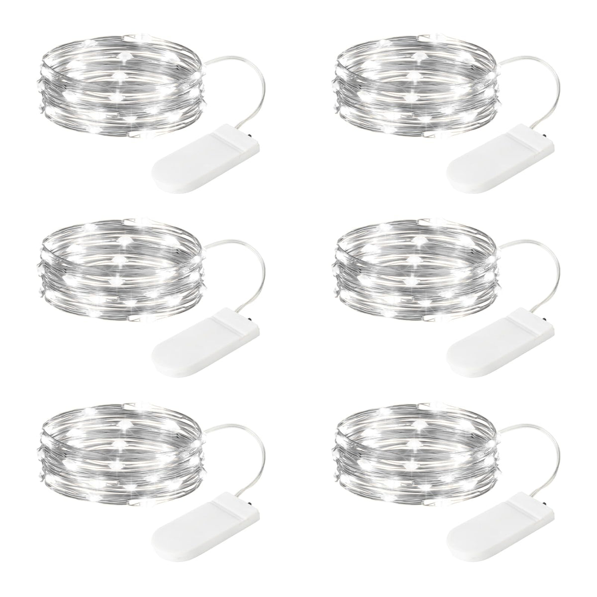 Sinamer 6 Pack White Fairy Lights Battery Operated Lights, 7Ft 20 Led Mini String Lights, Waterproof Silver Wire Starry For Mason Jars Wedding Party Centerpiece Table Christmas