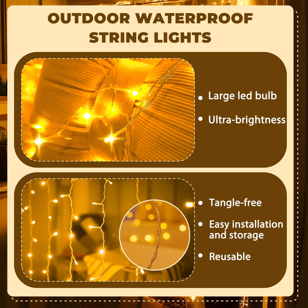 Q: Is the SINAMER Curtain Light suitable for outdoor use?A: Yes, the SINAMER Curtain Light is waterproof, making it perfect for both indoor and outdoor decorations. It's ideal for events such as Christmas, weddings, and parties, allowing you to create a warm atmosphere in any setting.