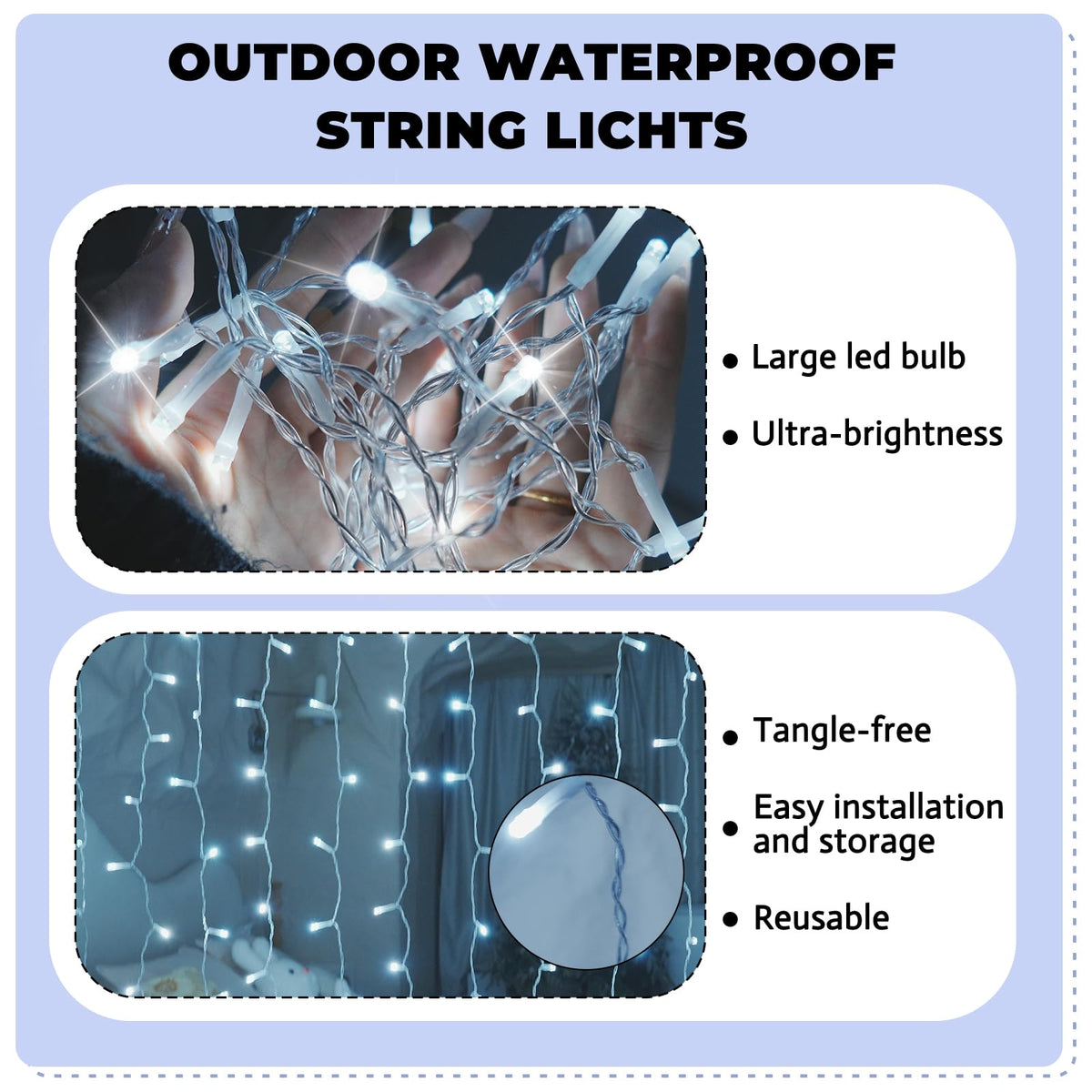 Q: Is the SINAMER Curtain Light suitable for outdoor use?A: Yes, the SINAMER Curtain Light is waterproof and designed for both indoor and outdoor decorations. It is perfect for events like Christmas, weddings, and parties, as well as enhancing any garden or patio space.