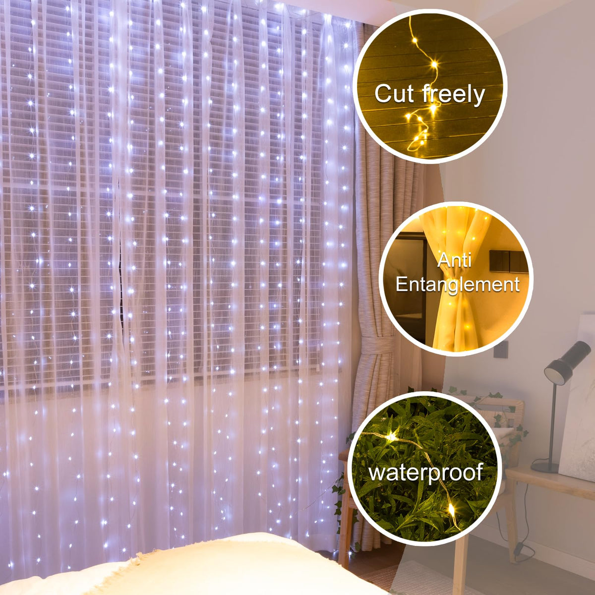Q: Is the SINAMER curtain light safe for indoor and outdoor use?A: Yes, the SINAMER curtain light is waterproof and safe for both indoor and outdoor decorations. It is perfect for enhancing the ambiance of events like Christmas, weddings, and parties, as well as for everyday home decor.
