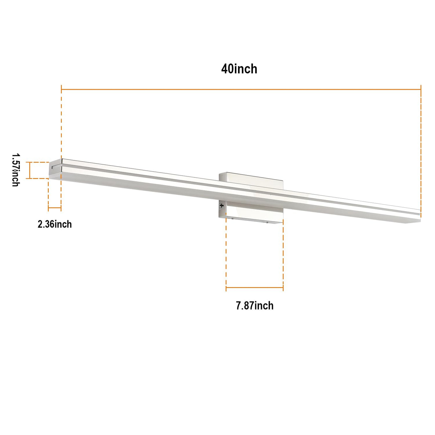 ?Material?With advanced electroplate craft and sealing technology, dust-proof, fog-proof, anti-corrosion and moisture-proof, suitable for humid environment. Frosted White Solid Acrylic Lampshade is rugged, durable and unbreakable, provides excellent down lighting without glare. Gives a great contemporary look to your master bathroom. | ?Energy Saving?30W LED Vanity Light. Although only 30W, but gives off great lighting brightness more than ordinary 150W bulbs. Environmentally friendly and save more electricity. | ?3 Color Temperature Options?You can control which color temperature your lights are and the overall ambiance of the room. 6000k is necessary for makeup application or shaving, but an evening bath will be more relaxing with 3000k or 4000k. | ?Dimmable Lighting?It