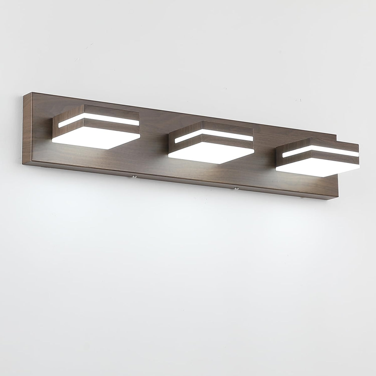 Sinerise Led Modern Bathroom Vanity Light Fixtures (3-Light, 24-Inch, Dimmable), Brown Wood Painted Modern Acrylic Bathroom Wall